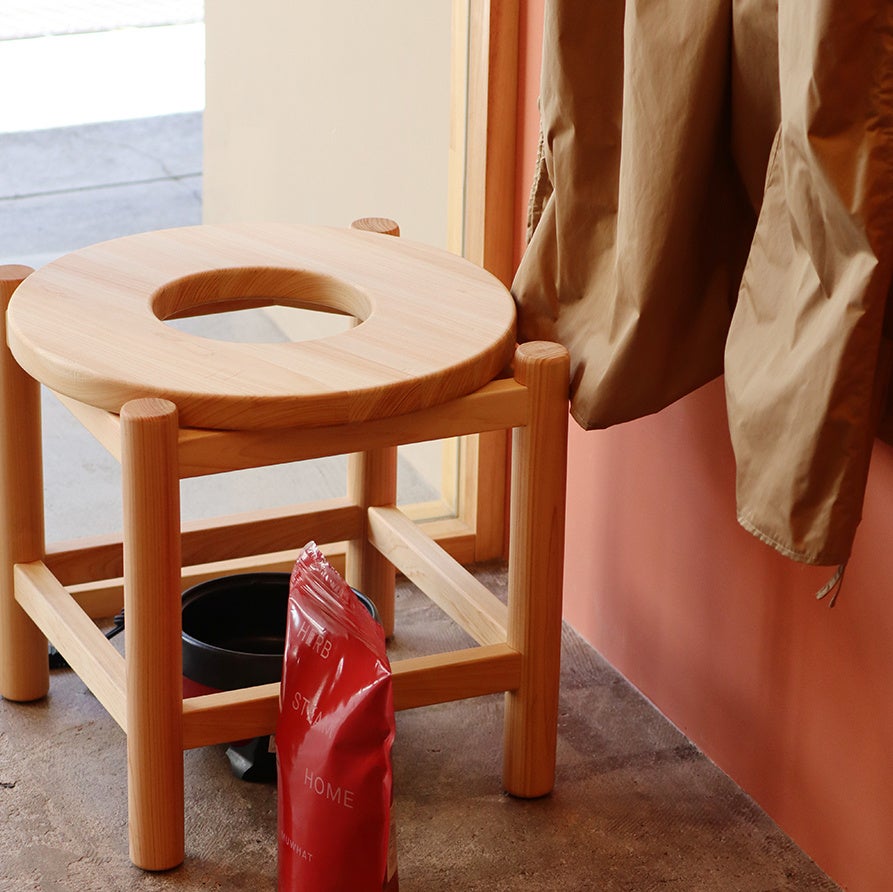 国産ヒノキを贅沢に使用した、よもぎ蒸し用の椅子背もたれあり)です。大きくとった座面は、さまざまな姿勢でよもぎ蒸しを満喫するのに最適。座面を交換するとダイニングチェアと変化します。