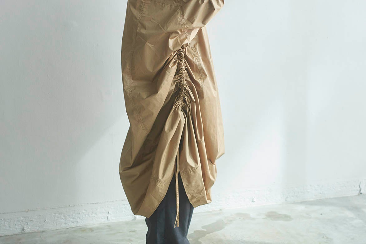 4. サイドのドロワーでお好みのシルエットへ。撥水加工が施され、アウトドアやレインコートなどタウンユースでも活躍します