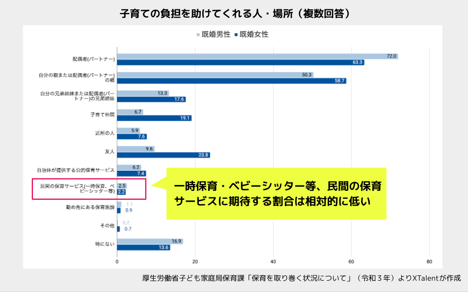 そんな中、一時保育やベビーシッター等の保育サービスへの期待は他の預け先と比較して相対的に低い状況です。また、withworkへは「面接の日程調整を行う際、子どもを預け先を探すことに苦労している」「既存の一時保育サービスは事前の登録や利用予約等、手続きコストが高いのでうまく使えていない」「子どもを預けることに罪悪感がある」という声が多く寄せられています。
