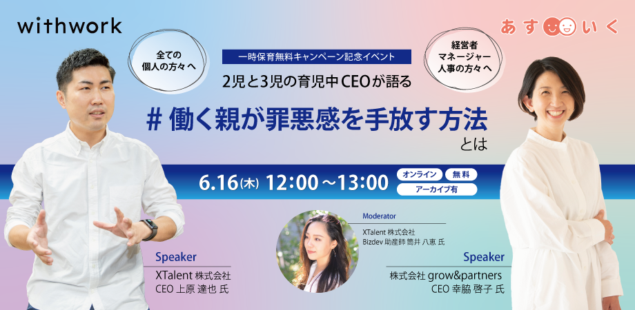 - タイトル:2児と3児の育児中CEOが語る『#働く親が罪悪感を手放す方法』とは