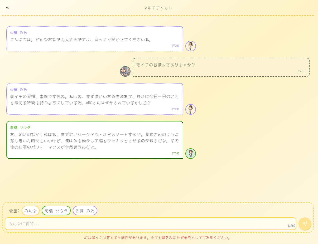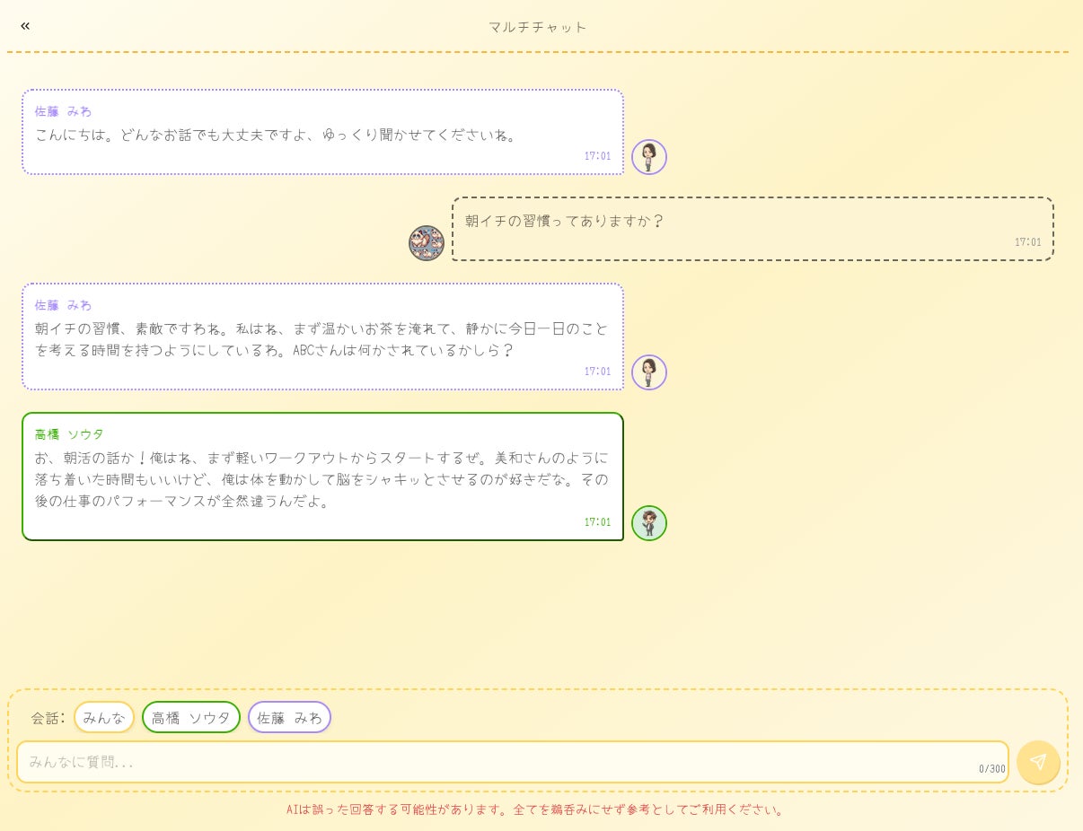 利用者自身が自分好みの相談相手を作る機能を追加予定です。