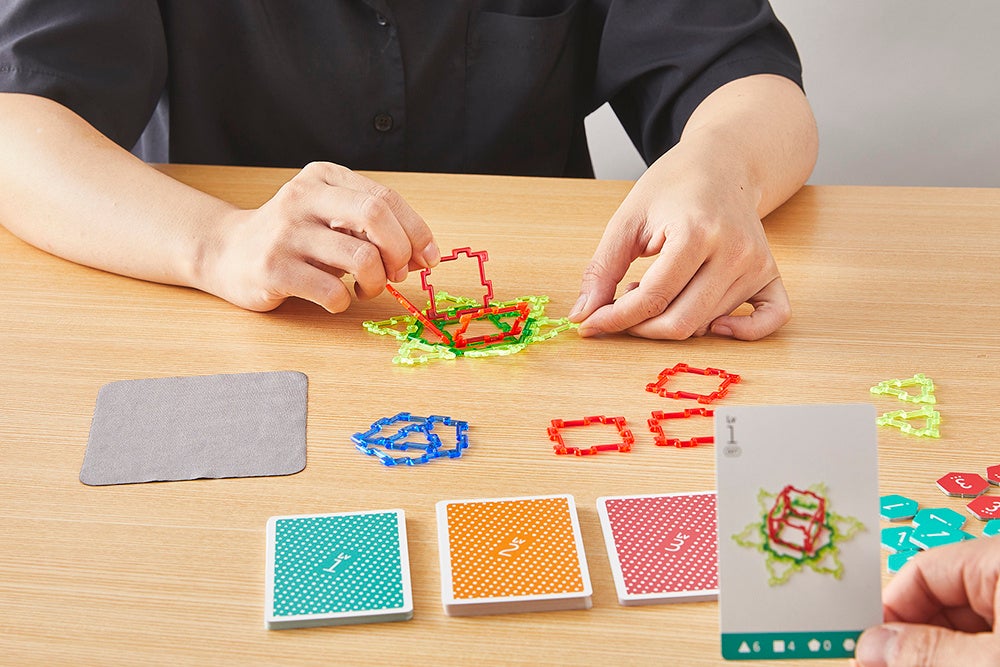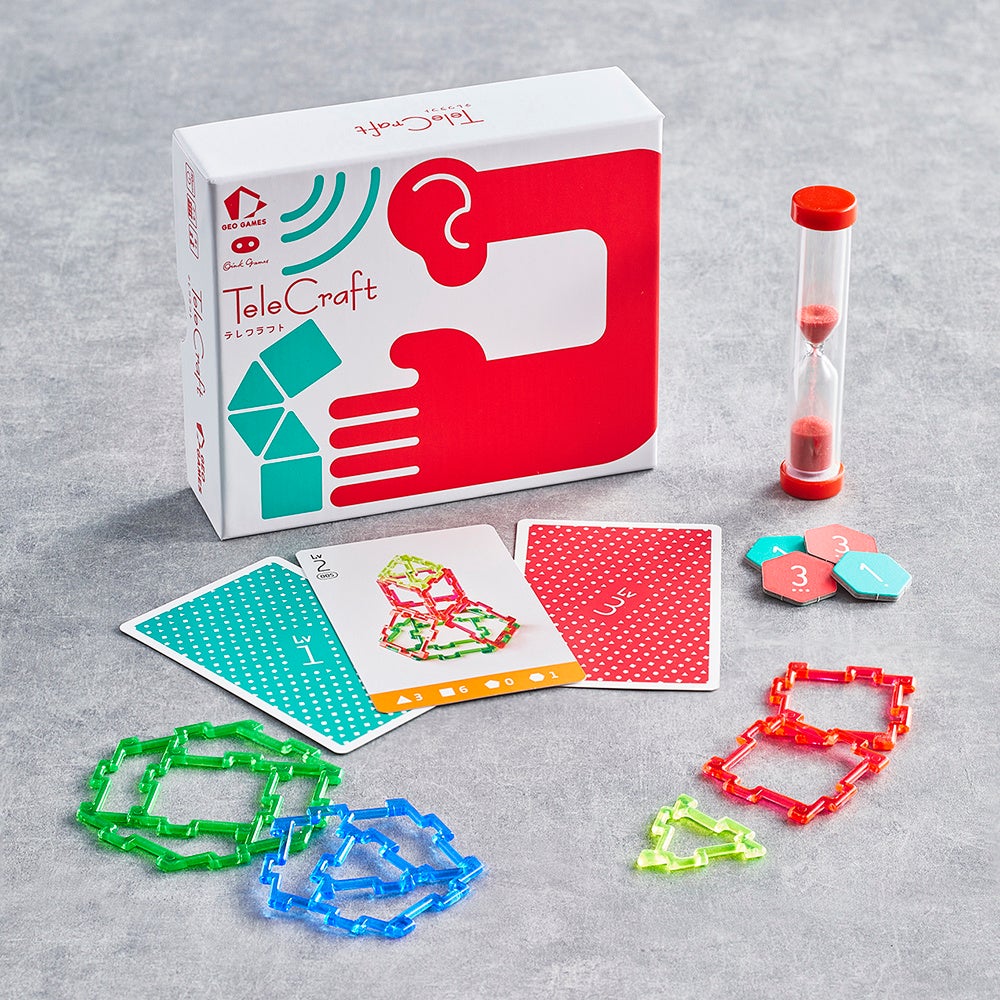 「テレクラフト」は株式会社オインクゲームズと共同開発したボードゲームです。伝達力・記憶力・理解力をテーマにしたこの作品は知育玩具ミニジオフィクスを使ったボードゲーム。