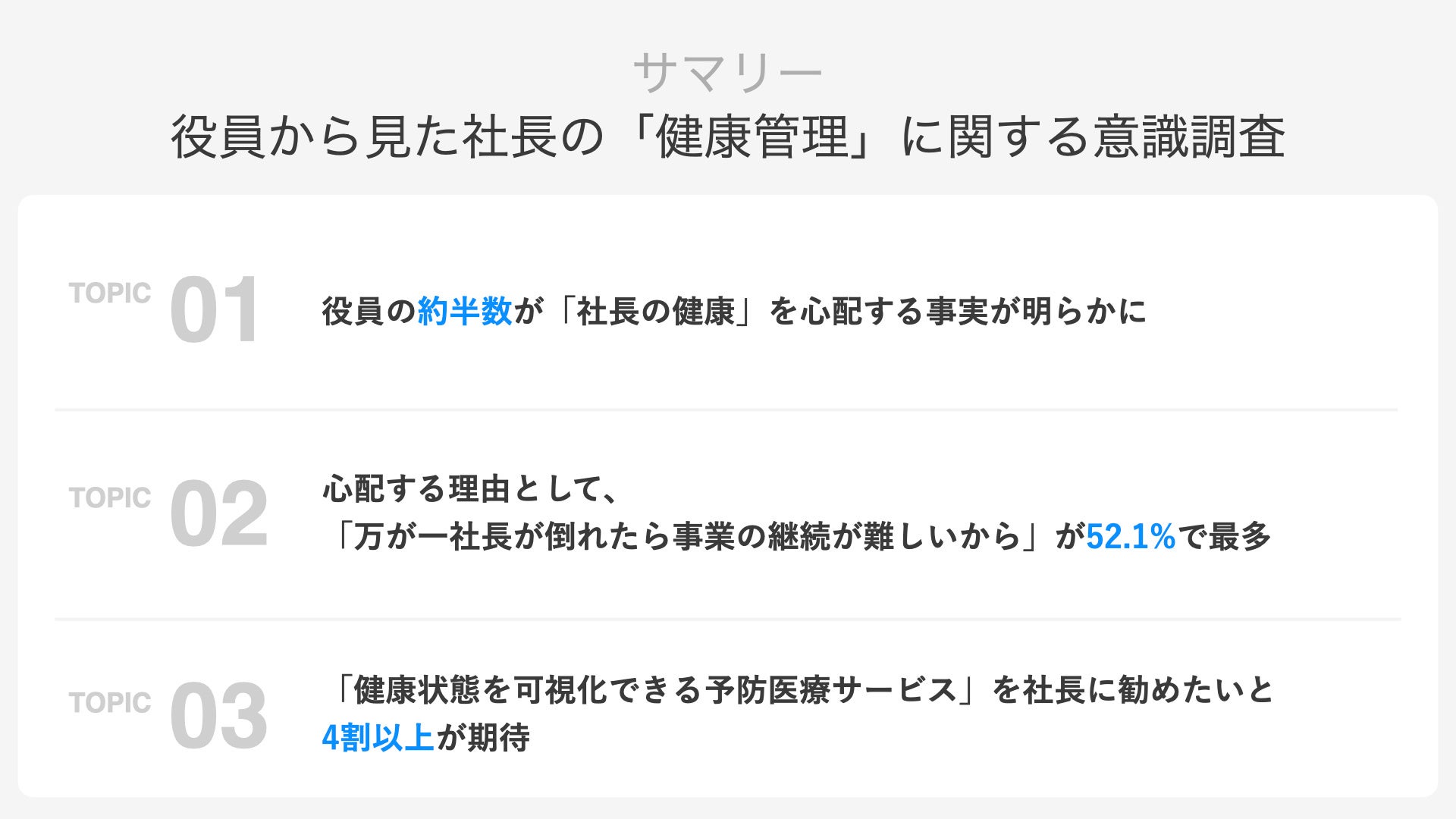 ■役員の約半数が「社長の健康」を心配する事実が明らかに