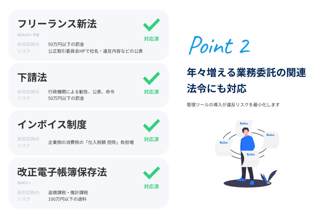 フリーランス新法・下請法・インボイス制度・電子帳簿保存法にも対応