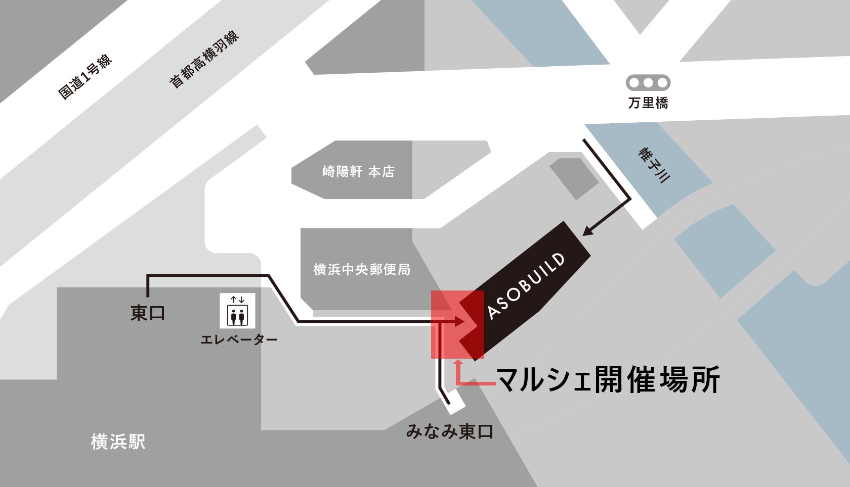 そこで、1日約79万人の乗車人員を誇る横浜駅から徒歩2分に位置する「アソビル」入口にてマルシェ事業を始動し、出店するマルシェ出店事業者を募ることといたしました。