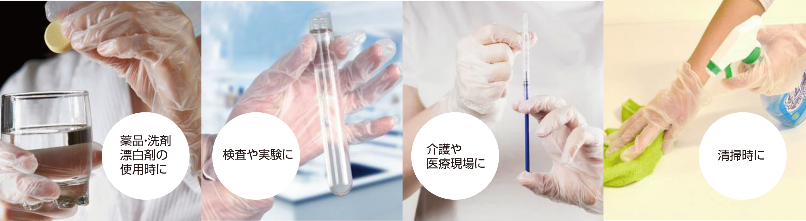 医療や介護の現場、清掃業、美容院・家庭用から業務用まで幅広くご活用いただけます。