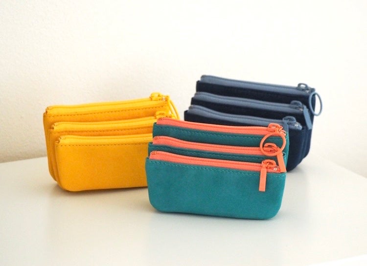 通常モデルとは逆向きにファスナーを配置し、左手でスムーズに開閉できるようにした特別仕様。素材には上質なヌバックレザーを使用し、ふわりと柔らかく、しっとりと手に馴染む優しい手触りと美しいカラーリングが特徴です。車のスマートキーやリップクリーム、小さな薬など、日常で持ち歩くちょっとした小物の収納に最適です。