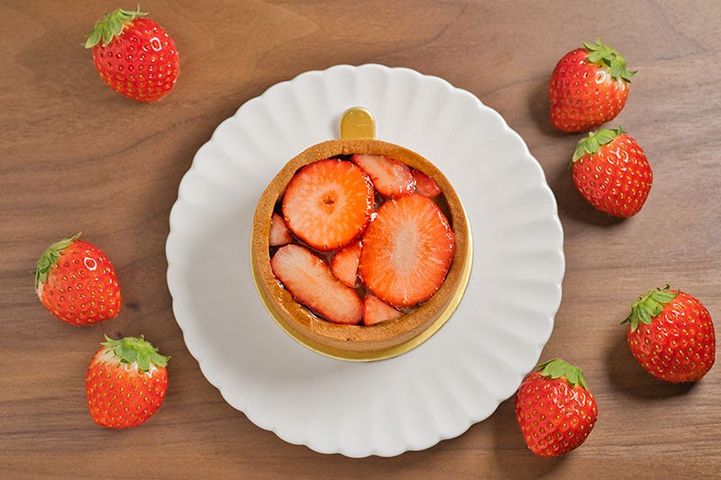 甘酸っぱい苺と相性の良いルバーブのコンフィチュールをアクセントに仕上げました。