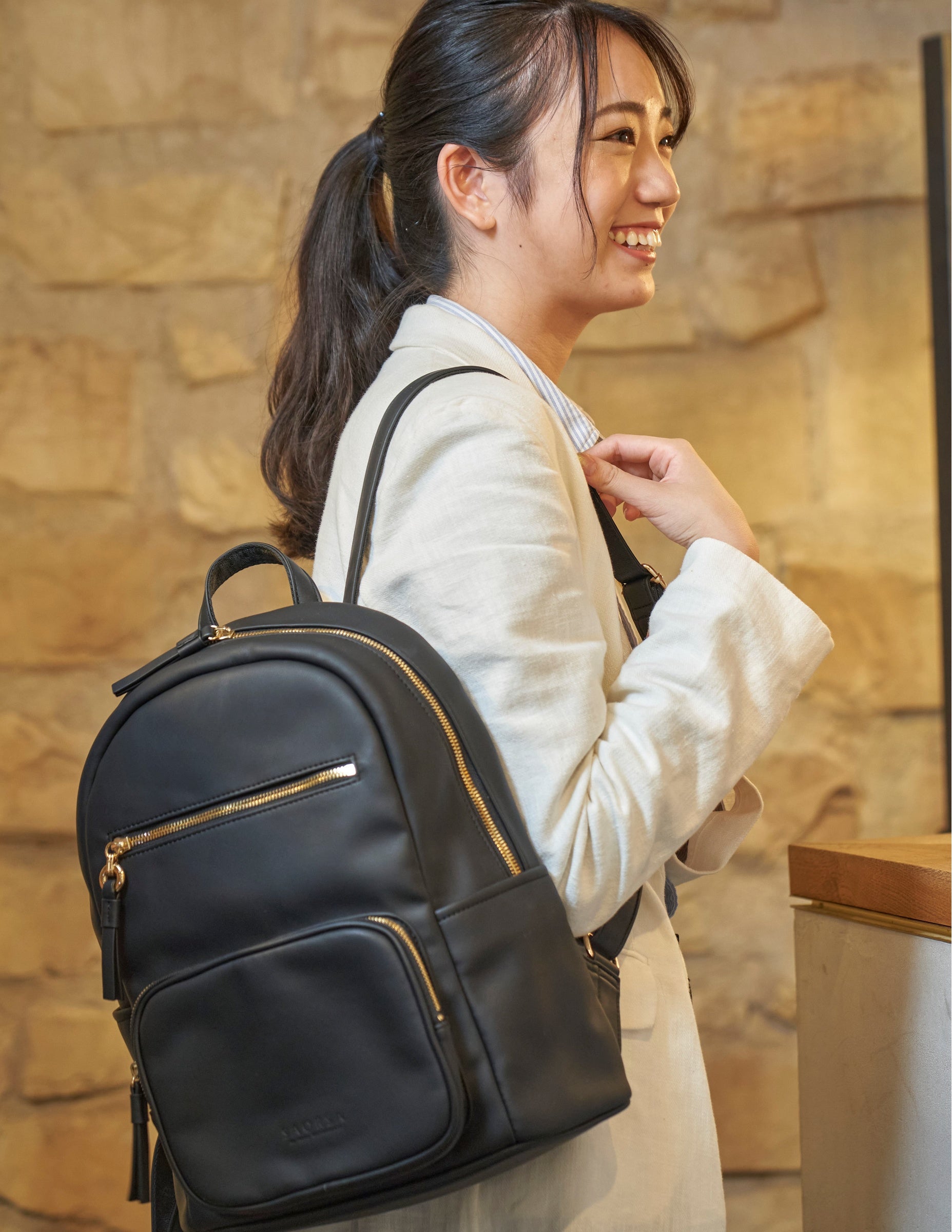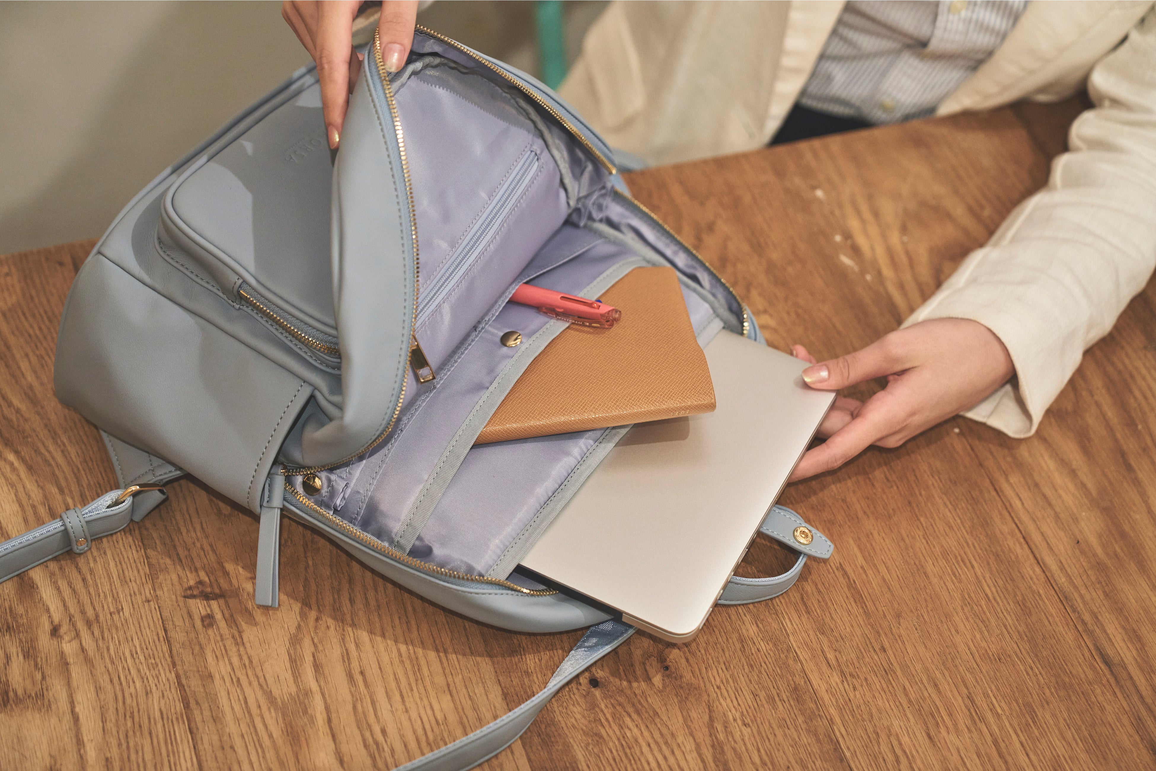 コーディネートにも合わせやすく、機能性や使いやすさも追求しています。「仕事」と「プライベート」を両立させるためのこだわりをデザインに込めたリュックです。