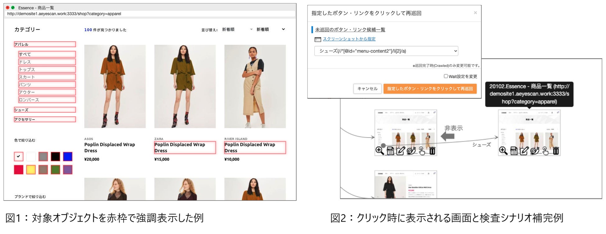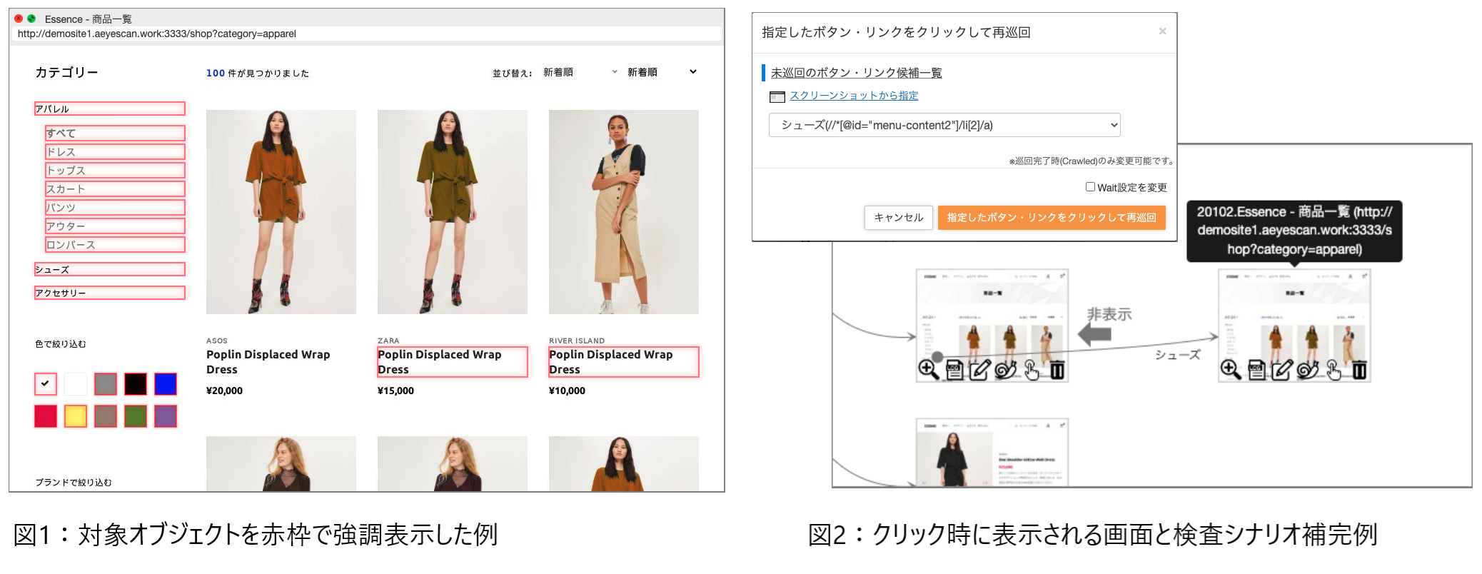 これまで、自動巡回利用時にAeyeScanが類似と評価した画面は画面遷移図に含まれず、対象外となった画面は手動での巡回作業が必要でした。今回特許出願中の機能により、非常に簡単な操作で、人手による巡回作業と同程度のきめ細かな検査シナリオ作成を実現しました。