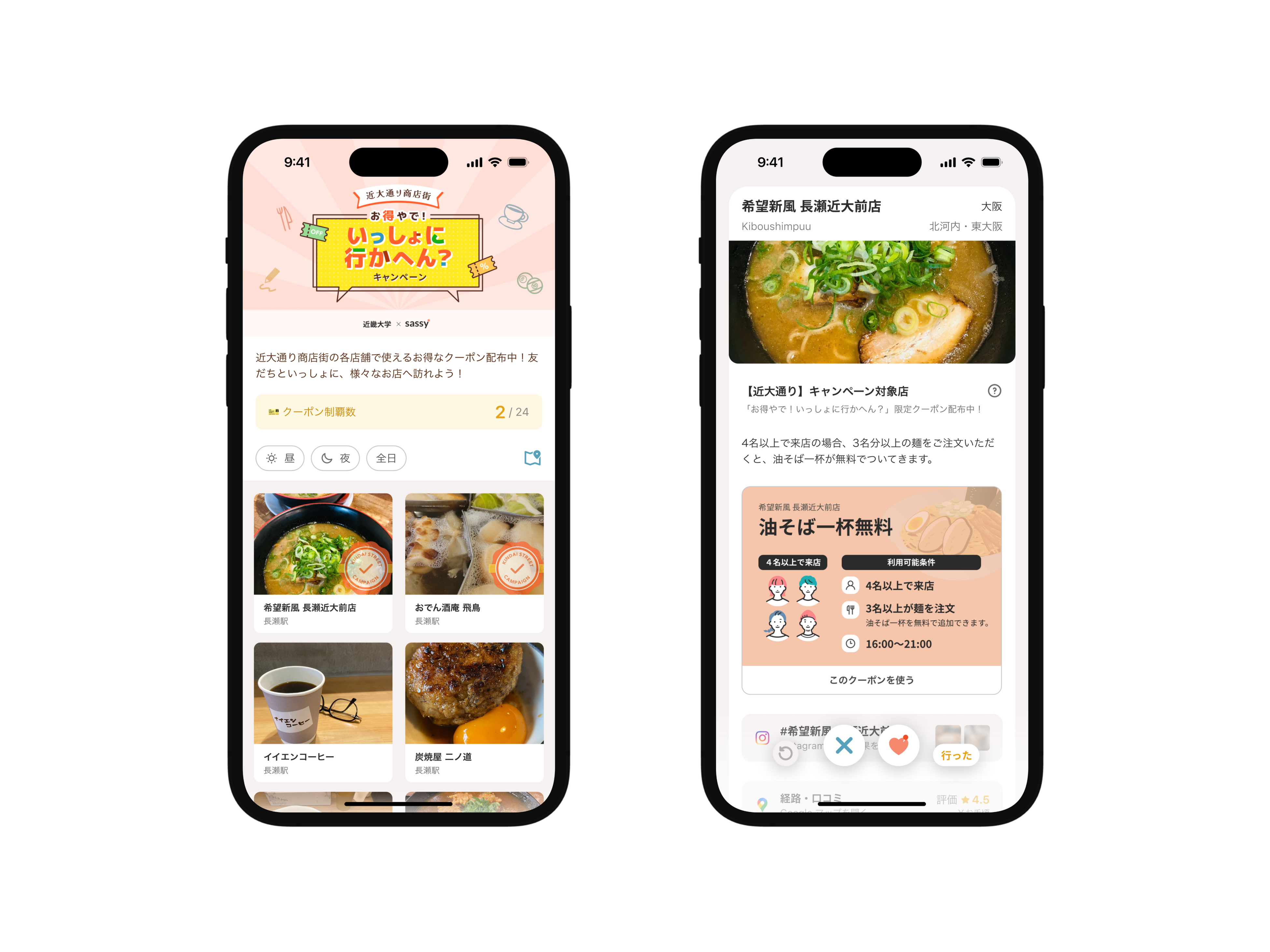 【好評につき第2弾】近畿大学とZ世代向け飲食・観光アプリsassy(サッシー)が再コラボ!近大通り商店街の売上倍増を目的としたキャンペーンを実施!