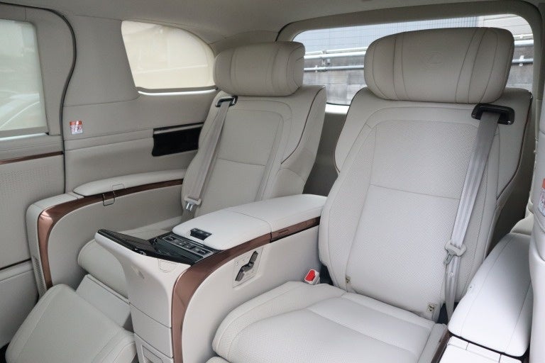 導入発表から早速たくさんのお客様からお問合せをいただいており、「LM」の注目度の高さを実感しています。広々とした後部座席は、革シートでゆったりおくつろぎいただけるだけでなく、パーティションによりVIPルームのような特別な空間になっています。「LM」でのハイヤー移動はまさに唯一無二のクルマ体験になるに違いありません、ご用命を心よりお待ちしております!