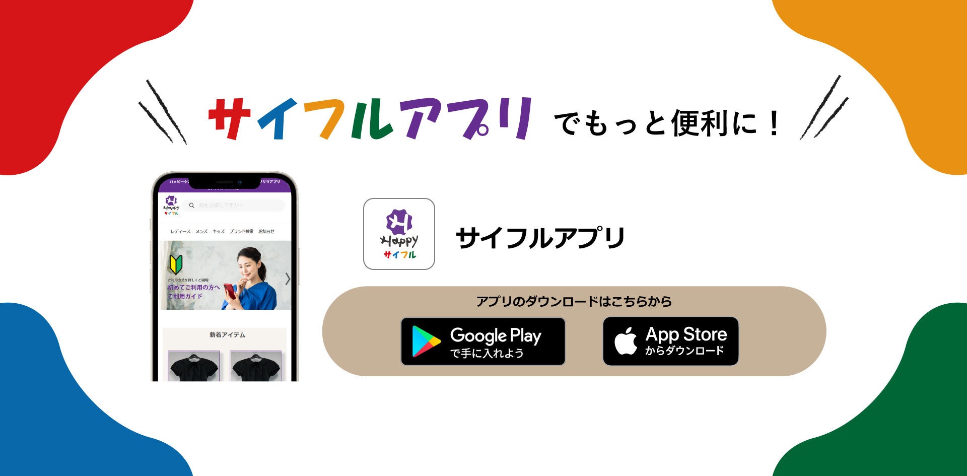 「Happyサイフル®」は、出品者は高値で出品しやすく、購入者は新品よりも安値で良い状態のアイテムを買いやすくなるメリットがあるため、「売る人」も「買う人」も安心してご利用いただけます。