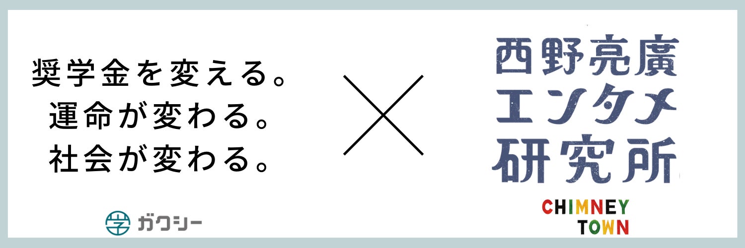 当奨学金では、新しいことに積極的にチャレンジする学生を応援したいという想いから、一次選考(書類選考)の課題文の作成にChatGPTの使用が必須となります。書類選考及び面接から合格者1名に10万円の奨学金が給付される他、申し込んだ学生全員にオンラインサロン『西野亮廣エンタメ研究所』(https://salon.jp/nishino)の会費3か月分を現金でキャッシュバック。当奨学金の設立にあたり、CHIMNEY TOWN様よりコメントいただいております。