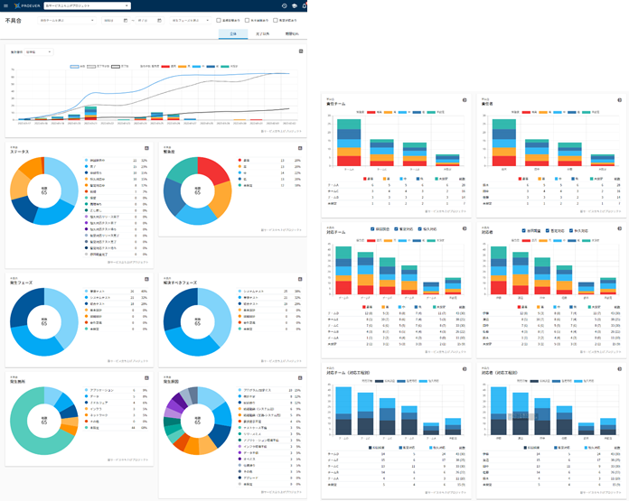 新たなプロダクトを生み出すプロジェクトでは、開発途中の品質状況を常に見える化し、分析することが非常に重要です。今回の新機能では、様々なテストを通じて発生した不具合の発生状況や傾向をリアルタイムにグラフ化し、より簡単に品質分析を行うことができるようになりました。また、不具合の対応チームや対応者、進行状況を可視化し、解消に向けたボトルネックを早期に発見することができます。