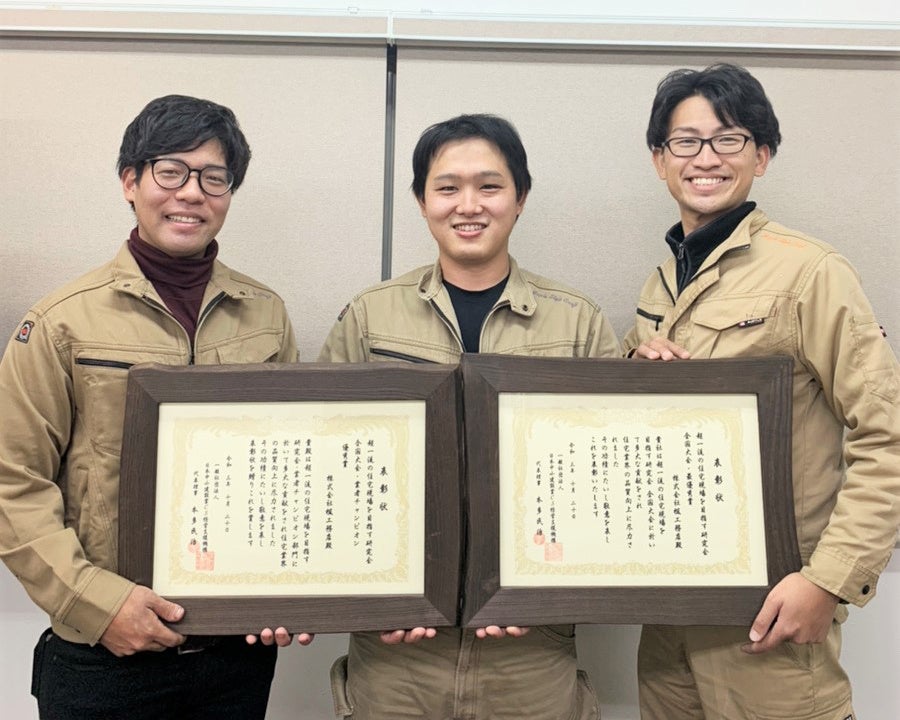 こうした取り組みの結果、昨年11月には、一般社団法人日本中小建設業CS経営支援機構が主催する「※超一流の住宅現場を目指す研究会」の全国大会において、2021年度全国最優秀を受賞し、先月3日には業界内最大級の住宅施工事例コンテスト「LIXILメンバーズコンテスト」で敢闘賞を受賞しました。