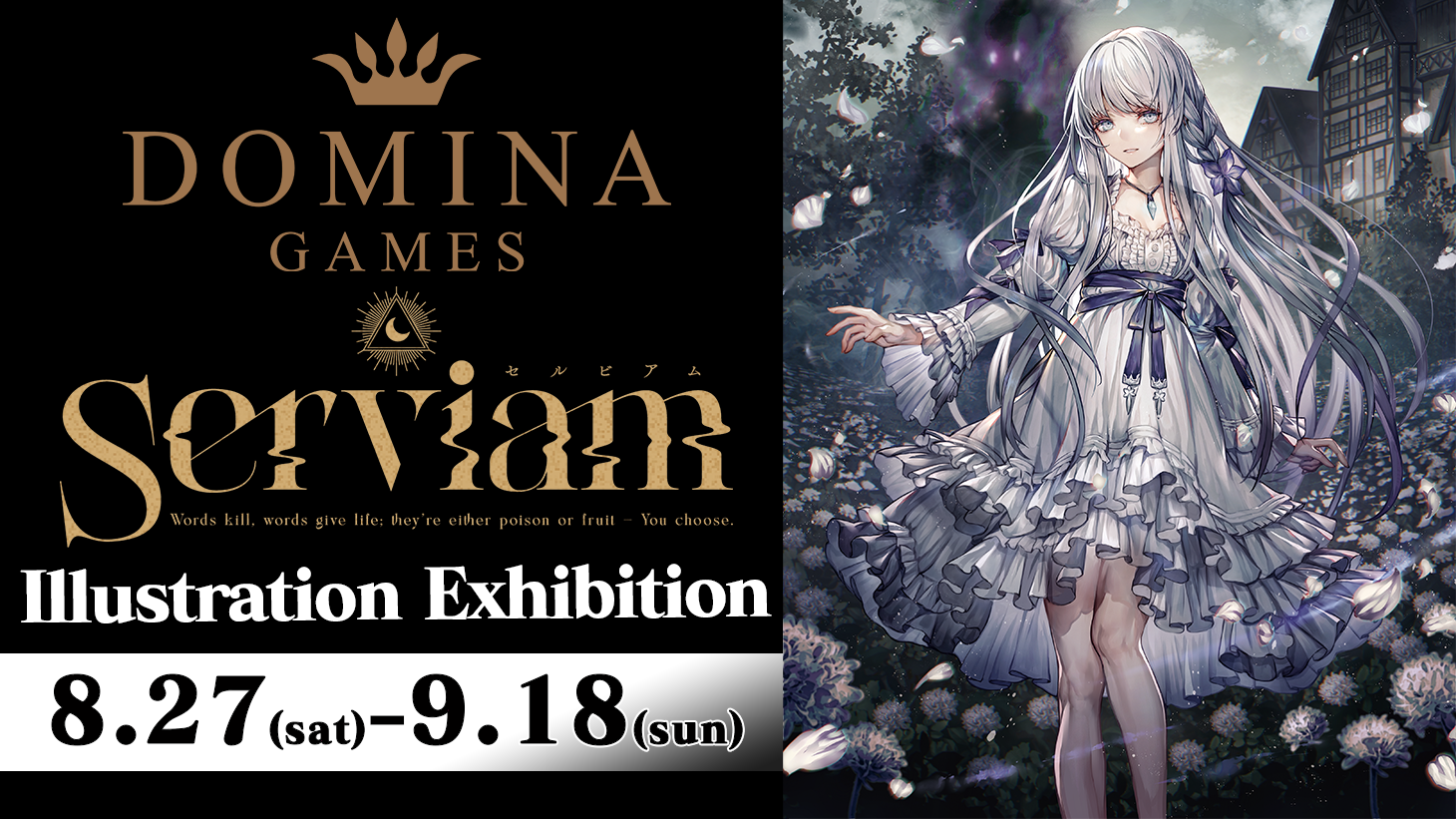 発売後、初のイラスト展示となる本イベントはDOMINAGAMES最新作「Serviam」の美麗なイラストをゆっくり鑑賞することが出来ます。