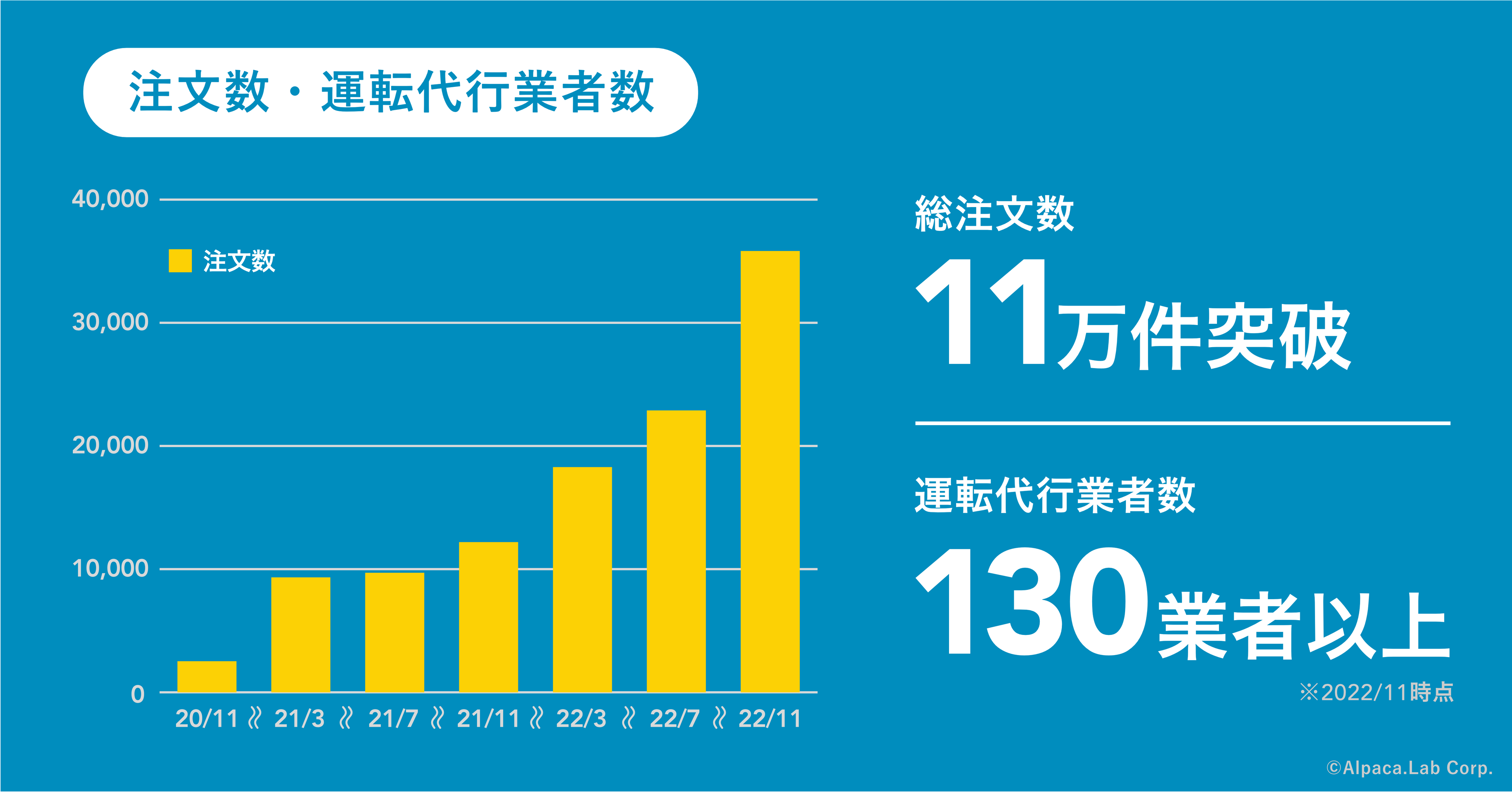 - 運転代行配車アプリ「AIRCLE(エアクル)」における注文数・運転代行業者数・流通総額