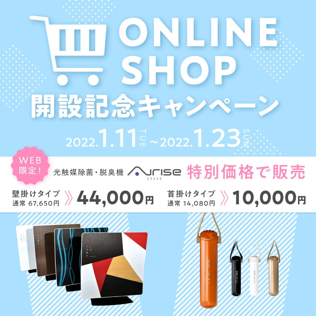 人気商品の光触媒・除菌脱臭機「エアライズ」を始め、新商品のUV除菌空気清浄機「アレガート」他、自社商品を特別価格で販売いたします。