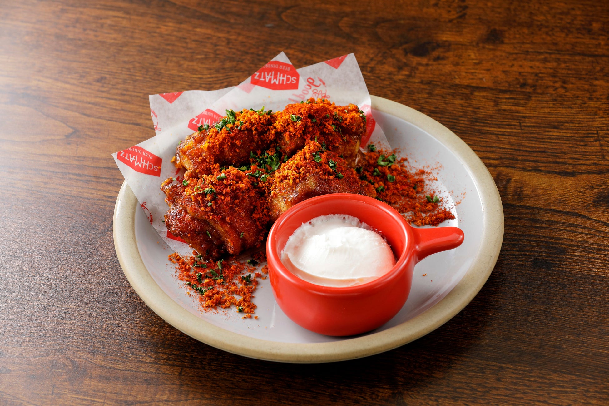 ビールに一日漬け込んだ柔らかなチキンに甘辛ダレを絡め、自家製HOTスパイスをトッピング。ビールとの相性は抜群!