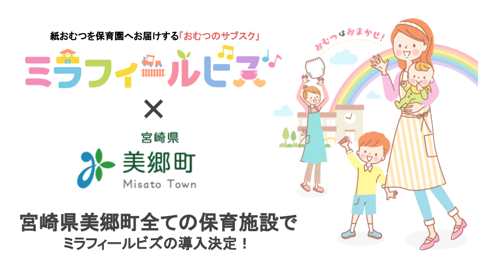 宮崎県美郷町はすべての町立保育所で保護者の負担軽減と保育現場の業務効率化、感染拡大防止のために、紙おむつのサブスク「ミラフィールビズ」を2023年6月から正式導入することを決定しました。