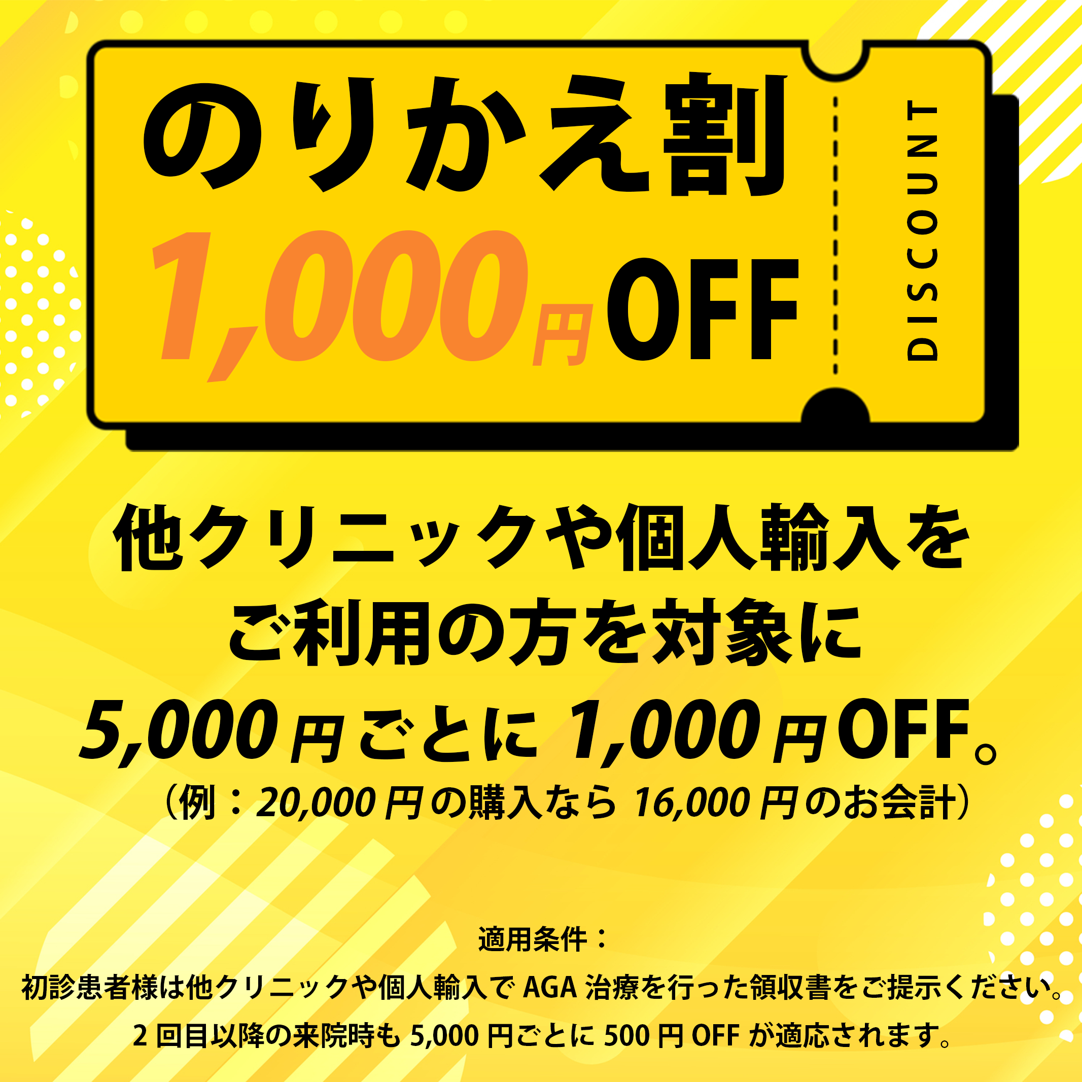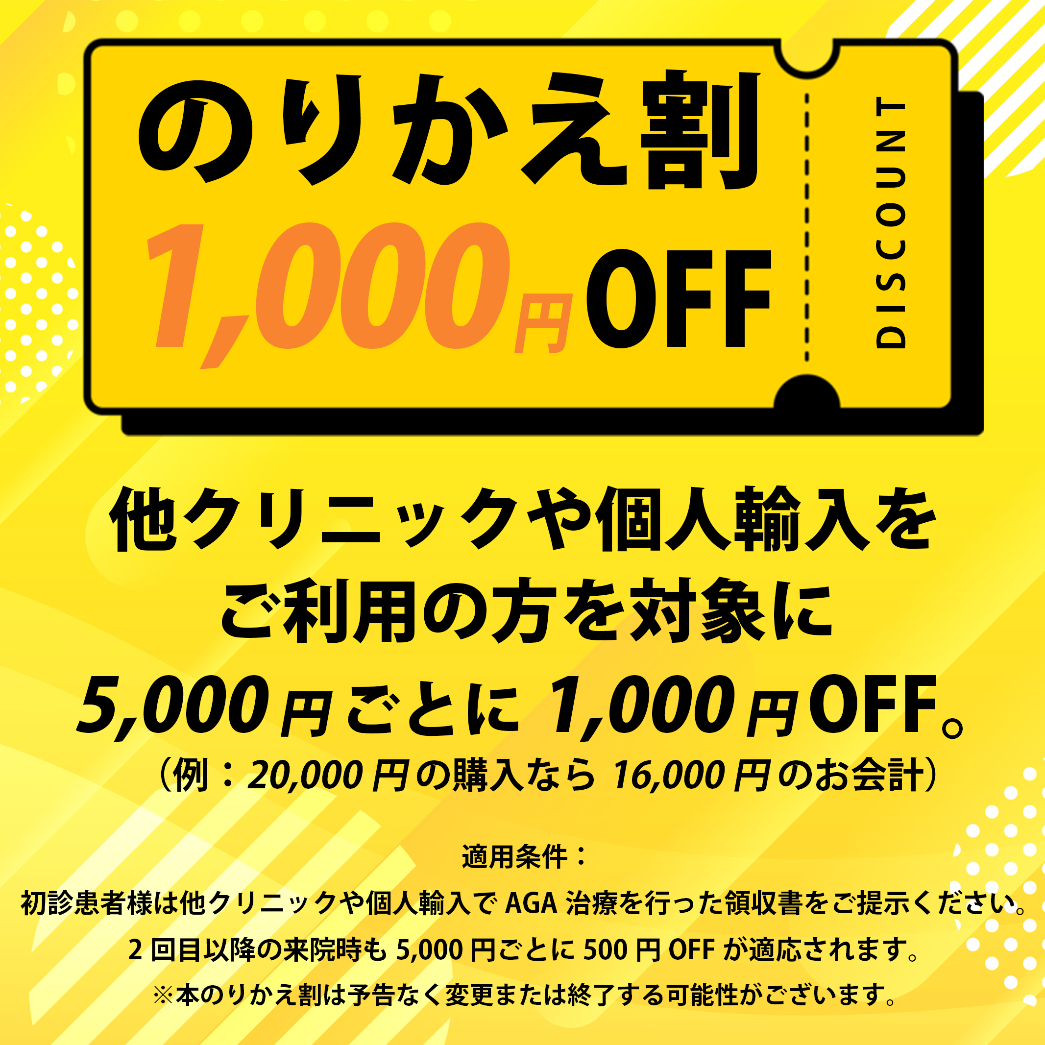 イースト駅前クリニックで初のAGAのりかえ割スタート