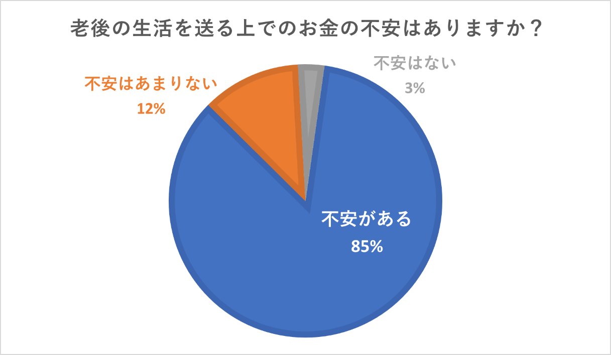 続いて「老後の生活において、お金の不安」についてもアンケート調査を行いました。