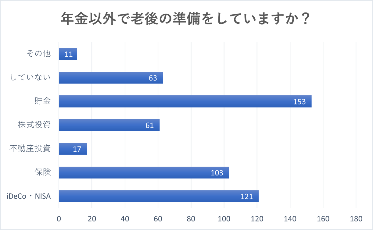 また、老後のお金に不安があため年金以外で準備をしている方もおり、今からでも将来のことについて考えてみてはいかがでしょうか。