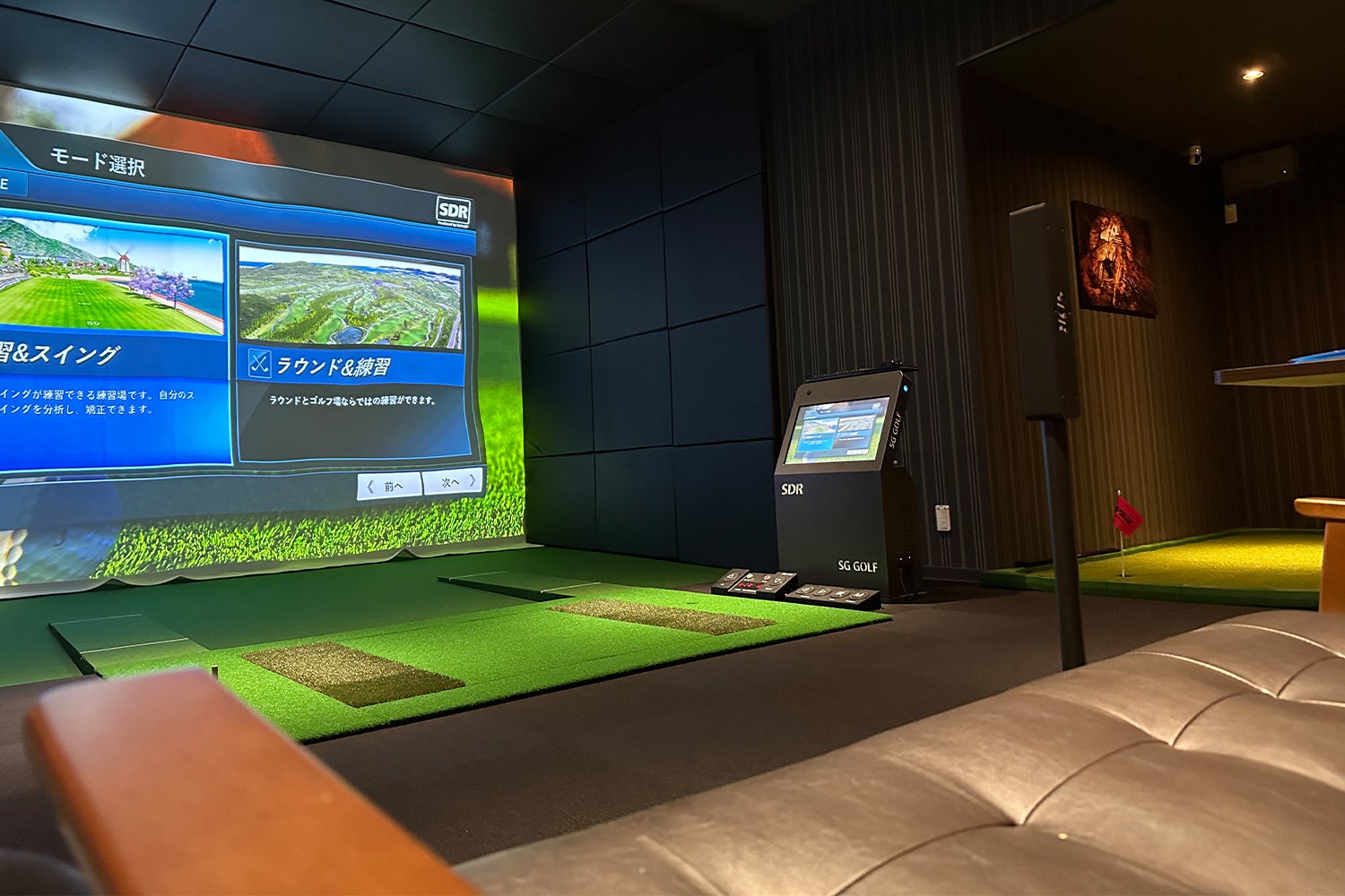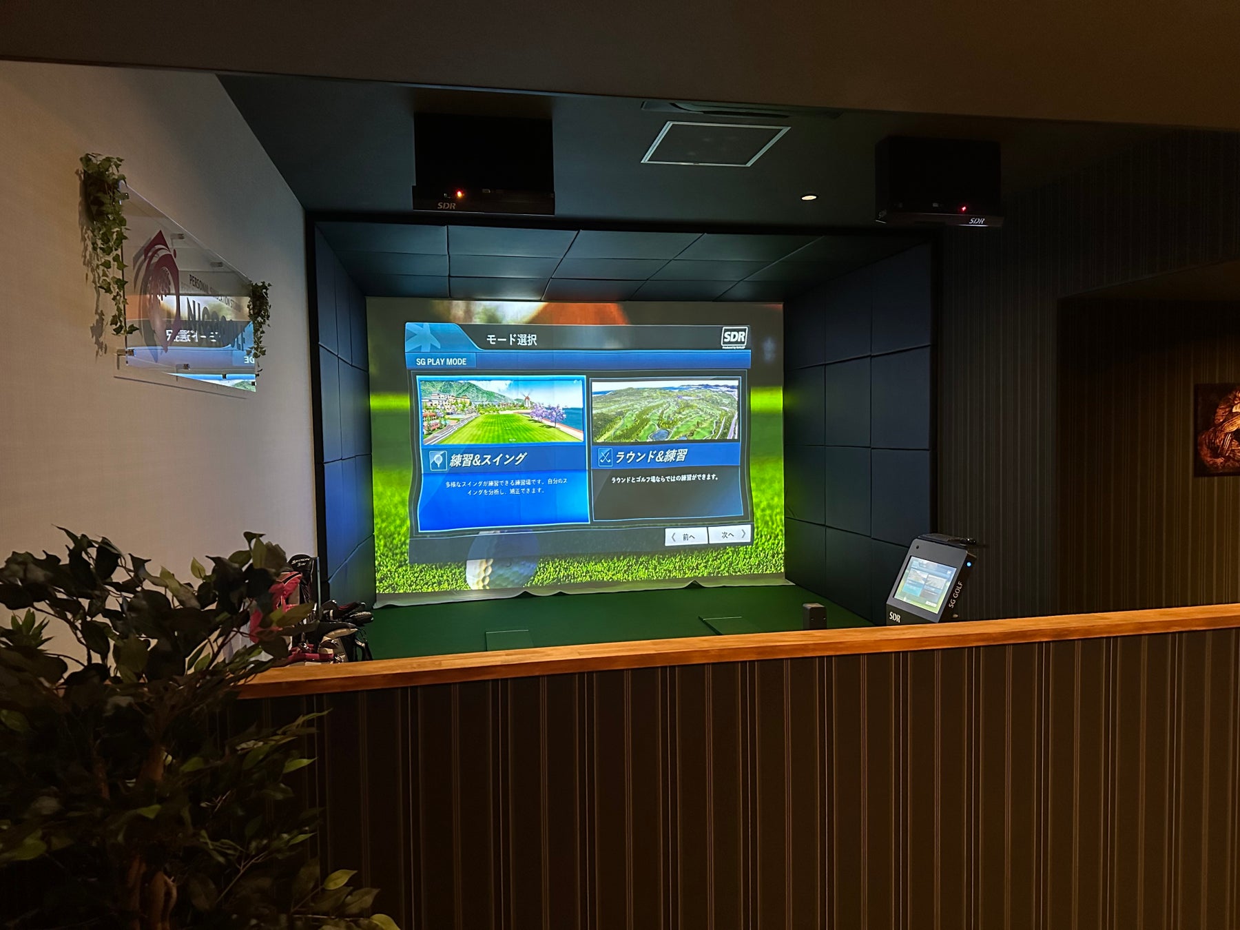 大画面のシミュレーションゴルフはまるで本物のコースを回っているかのようです。お友達やお知り合いの方と、楽しめるのも本物のゴルフコースと同様です。