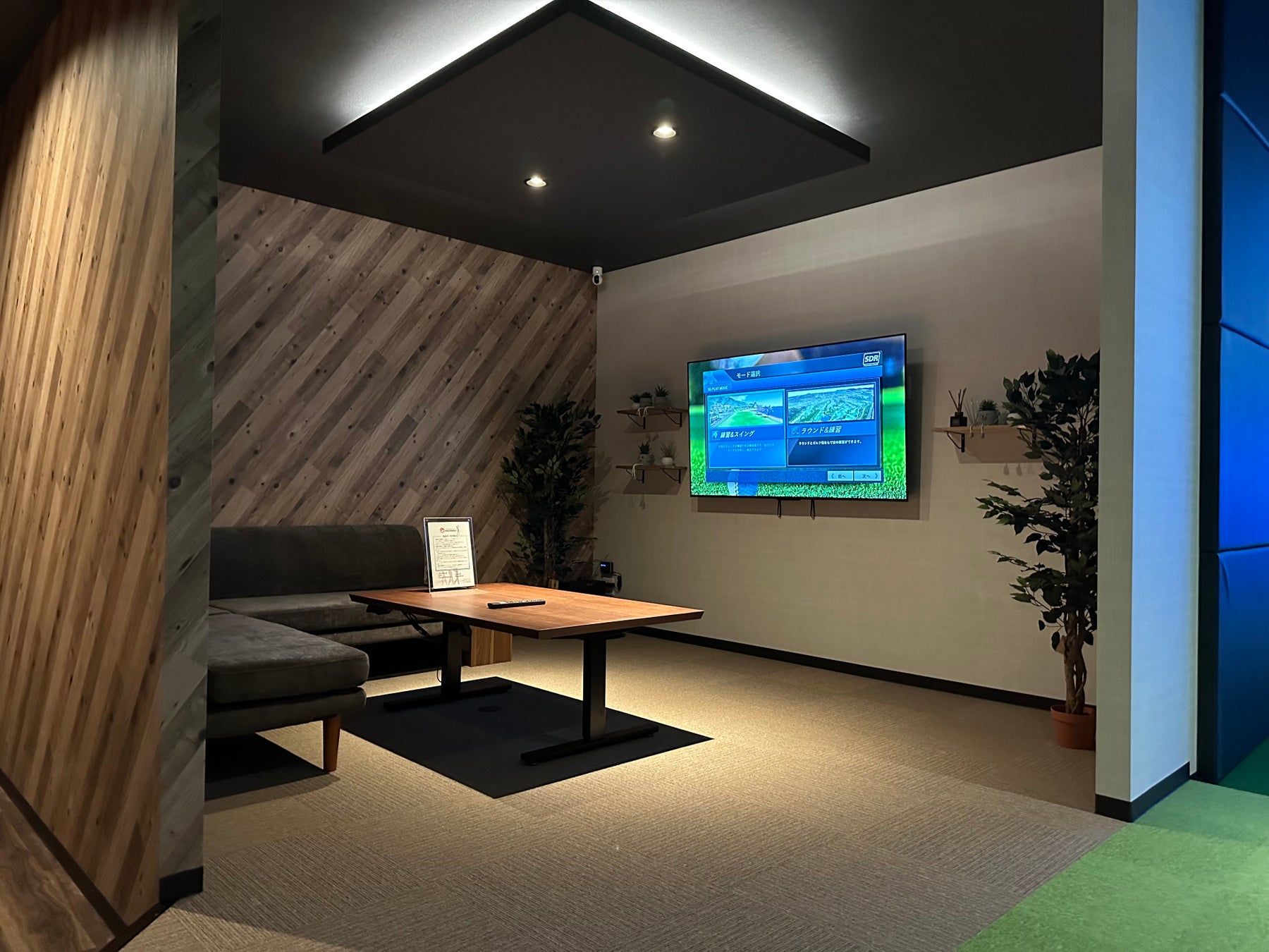 練習場には完全個室のラウンジ併設ブースが2つ。