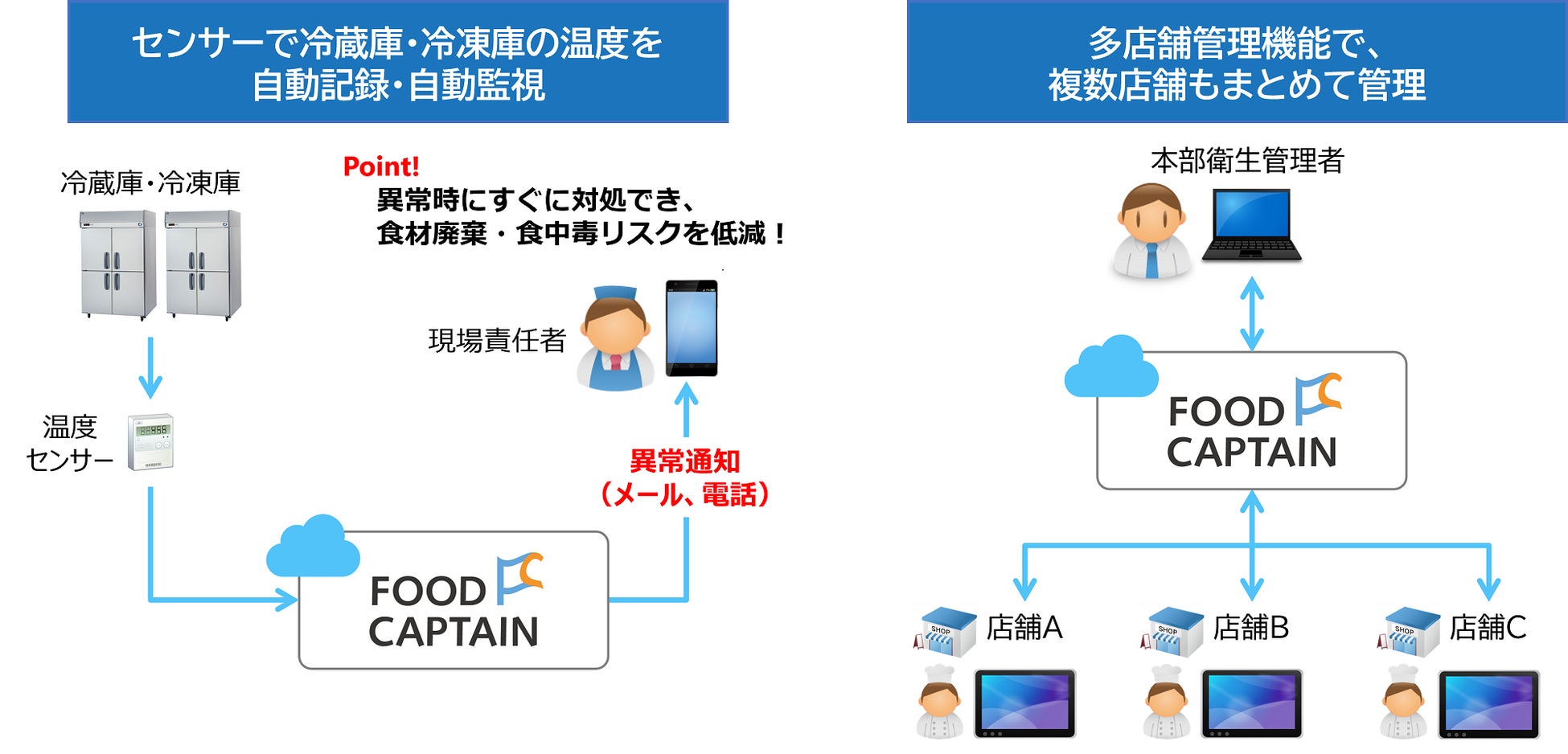 また、これまでは何等かのトラブルで温度管理上の異常に気がつくチャンスが1日に3回程度の温度測定時しかありませんでしたが、「FOOD CAPTAIN」の活用により従来より高頻度で測定可能な上、あらかじめ設定した温度を一定時間以上外れた場合には登録しているスマートフォン等に電話でアラートを受信でき、異常が発生した場合に素早く対応できるようになりました。