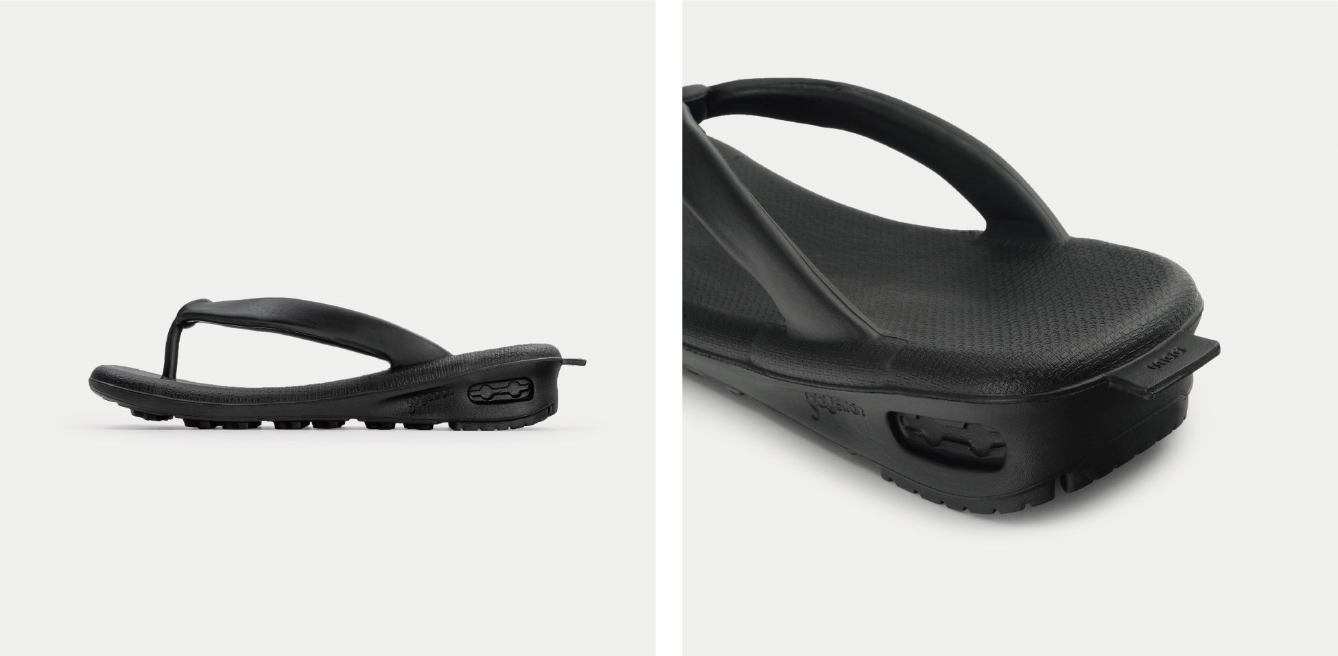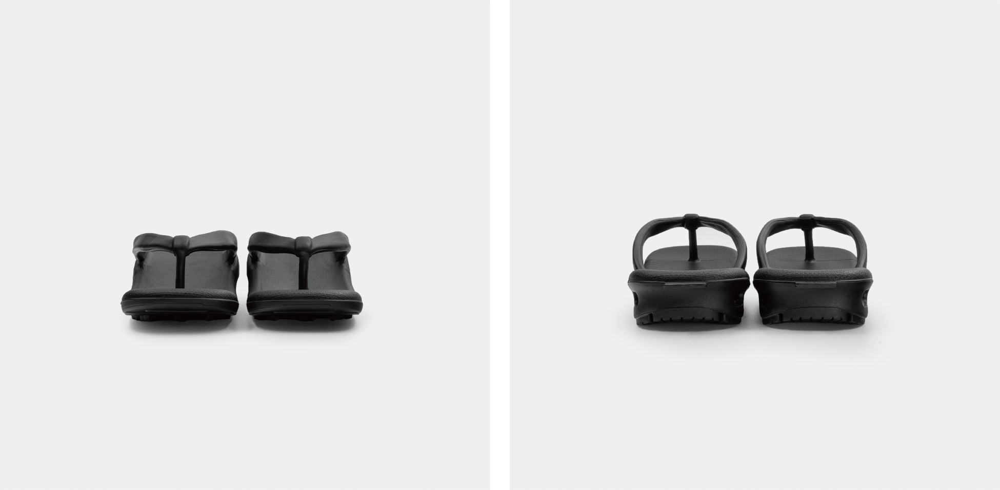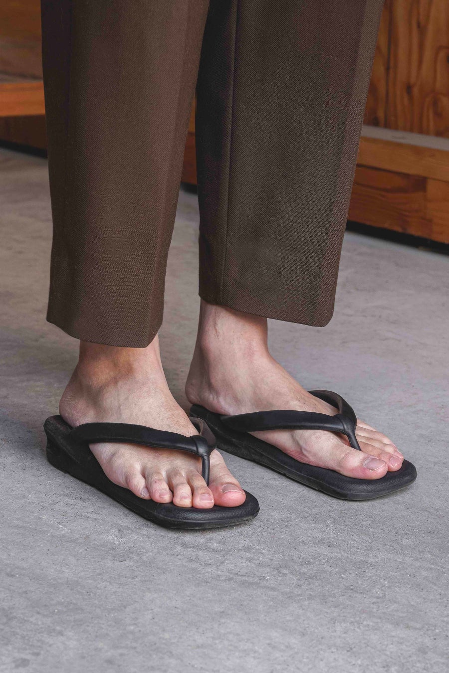 ベーシックなカラーですが、鼻緒や天板といったパーツごとに微妙な凹凸の変化を持たせたことで、同色ながらも不思議と奥行きを感じられるブラックに仕上げました。