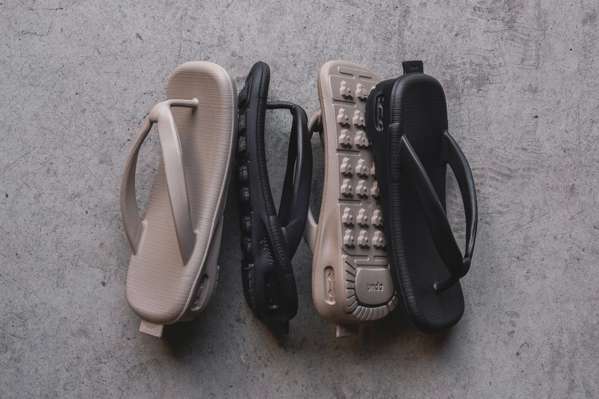 様々な機能性をアップデートしつつ、 「unda-雲駄-」の魅力である、独特な生地の凹凸の質感や、左右対称などの粋な履き方は継承。