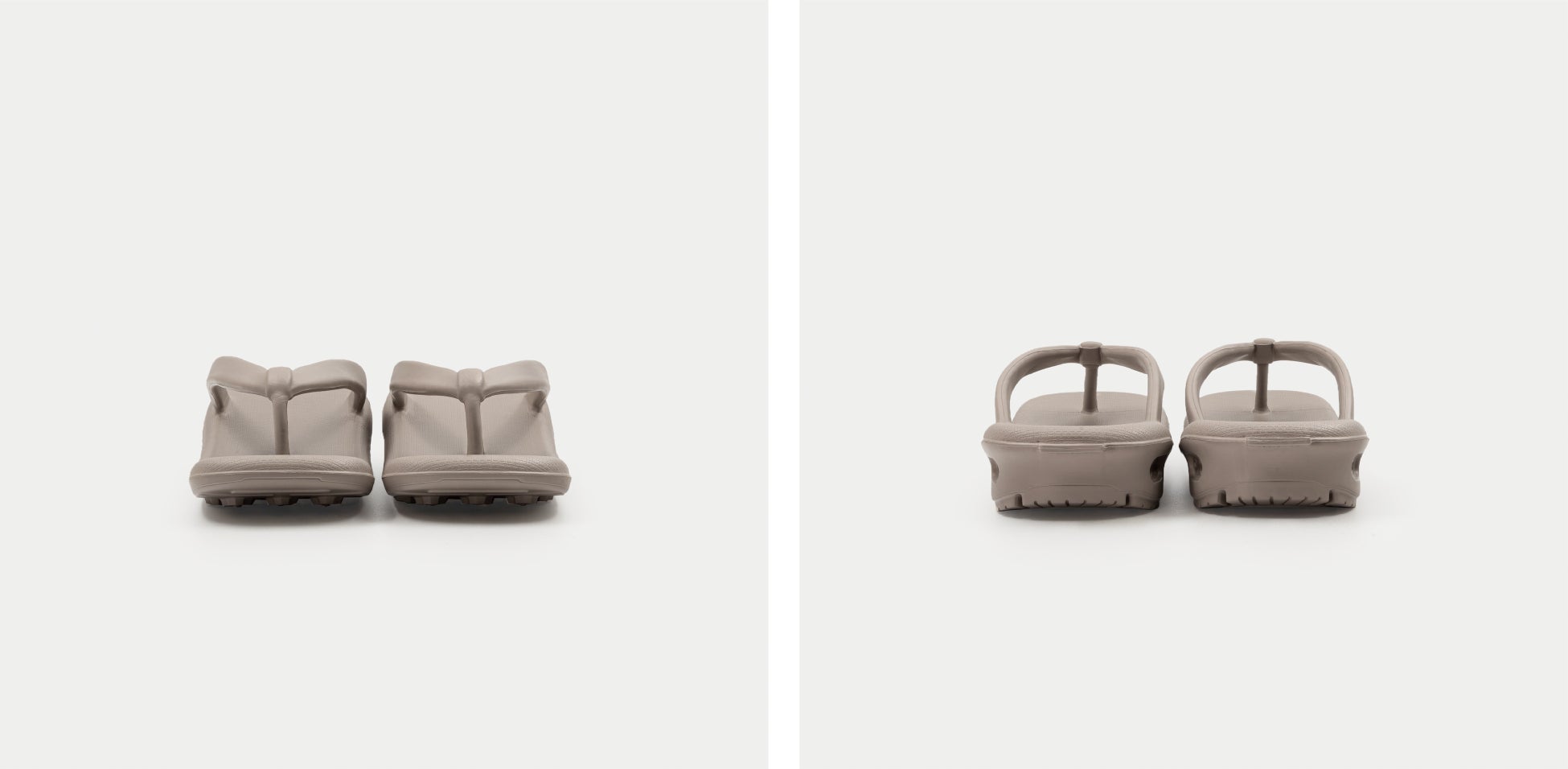 他の履き物と比べて素足で履く機会が多いものだからこそ、何度もサンプル作りを重ねて、肌なじみが良く、血色がよく見えるグレーとベージュの配合を追求しました。普段黒を選ぶ方にも新しい定番として提案したいカラーです。