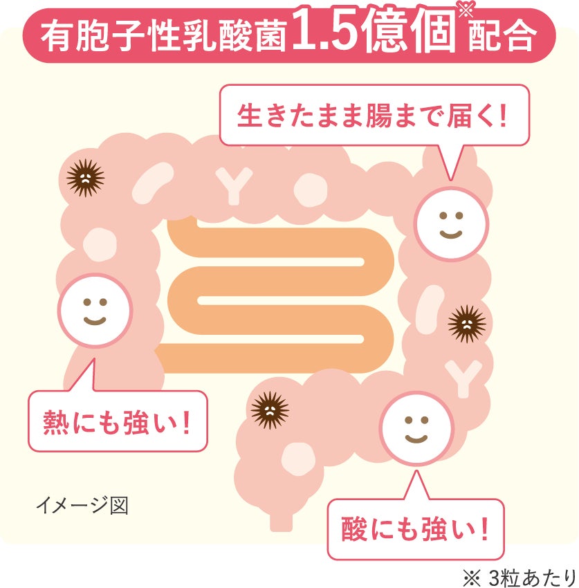 ◆生きて腸まで届く「有胞子性乳酸菌」を1.5億個※配合