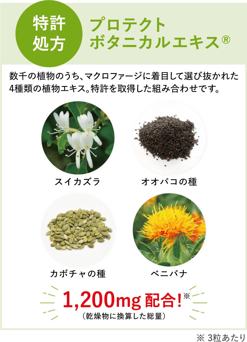 ◆マクロファージに着目して開発した植物エキス「プロテクトボタニカルエキス®」を配合