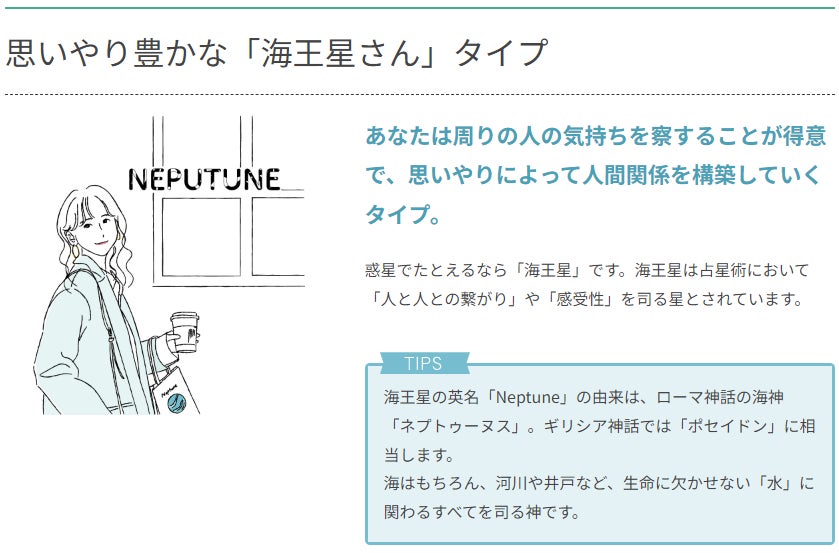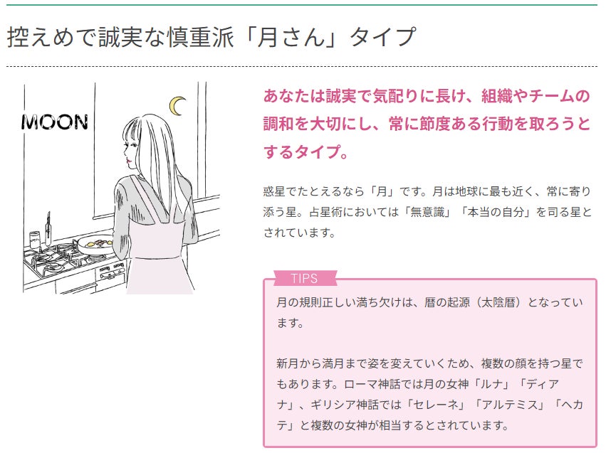また、働き方や暮らし方など、生き方の選択肢が増えている一方で、日本のジェンダーギャップ指数は146カ国中125位。女性の生きづらさが取りざたされる中、少しでも女性たちが元気になれるようなコンテンツを作りたいとの想いから、【惑星タイプ性格診断】の開発にいたりました。