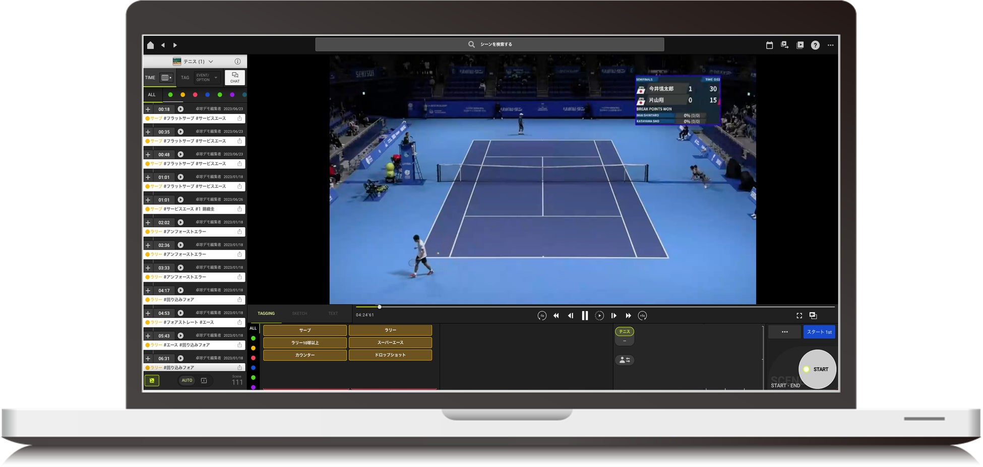 今回RUN.EDGEは、「映像をシーンで見る・活用する」ための「シーン再生技術」を活用した、映像分析プラットフォームを活用し、全日本テニス選手権のハイライト映像を作成します。