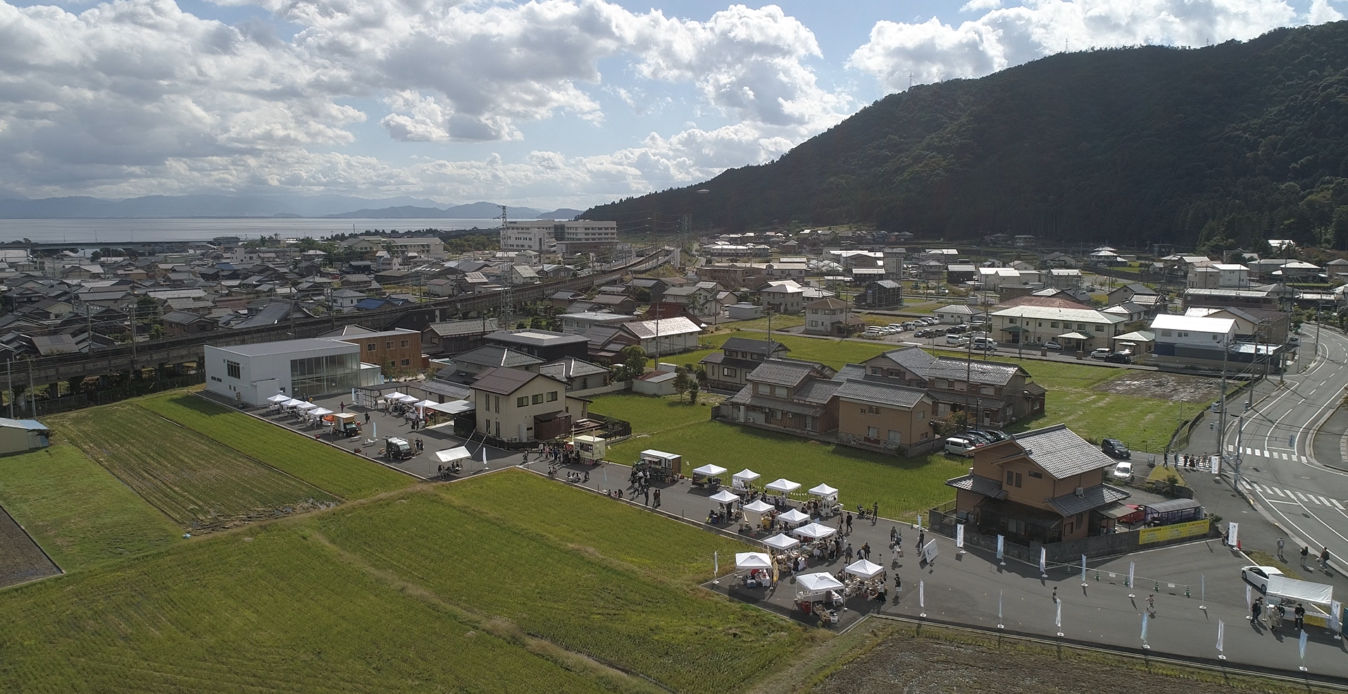 人口減少が進む高島市の活気を取り戻すため、来場者と出展者が繋がり、地域の豊かな暮らしを創造するきっかけを生み出すマルシェを年2回開催。市内外から1000名以上が来場する湖西の人気イベントであり、地域のマルシェと連携をすることで、相乗効果を生むまちづくりを行っています。