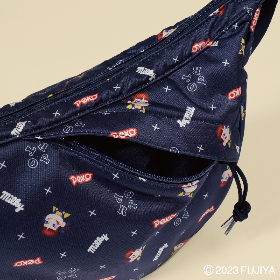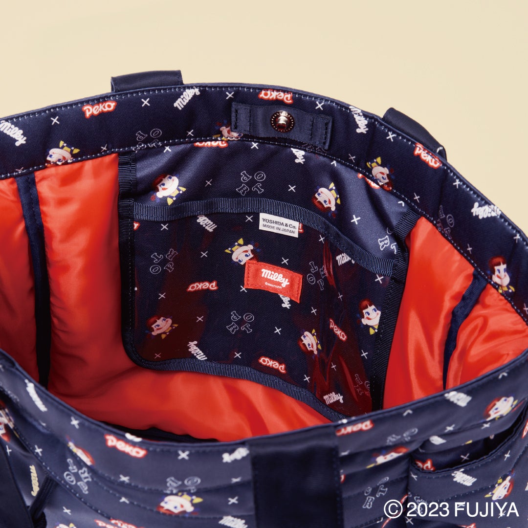 今回のコラボレーションは、POTRモノグラムに「milky」や「ペコちゃん」を組み合わせたオリジナルデザインを全面にプリントしました。