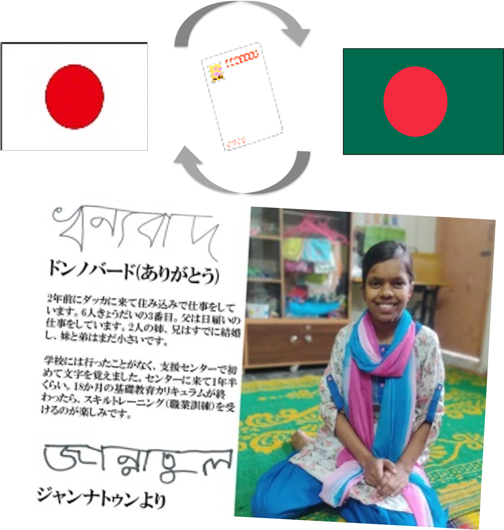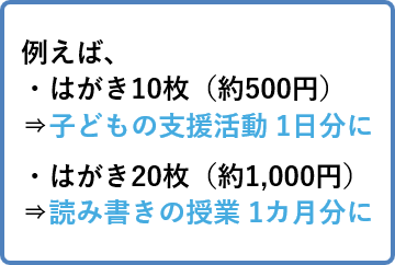 - はがき20枚が「読み書きの授業1カ月分」に。