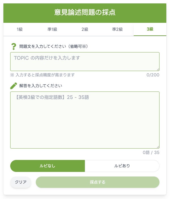 今回は意見論述が対象ですが、Eメール問題・要約問題にもルビ付与を拡張し、あらゆるライティング練習で同じ利点を得られるよう順次アップデート予定。