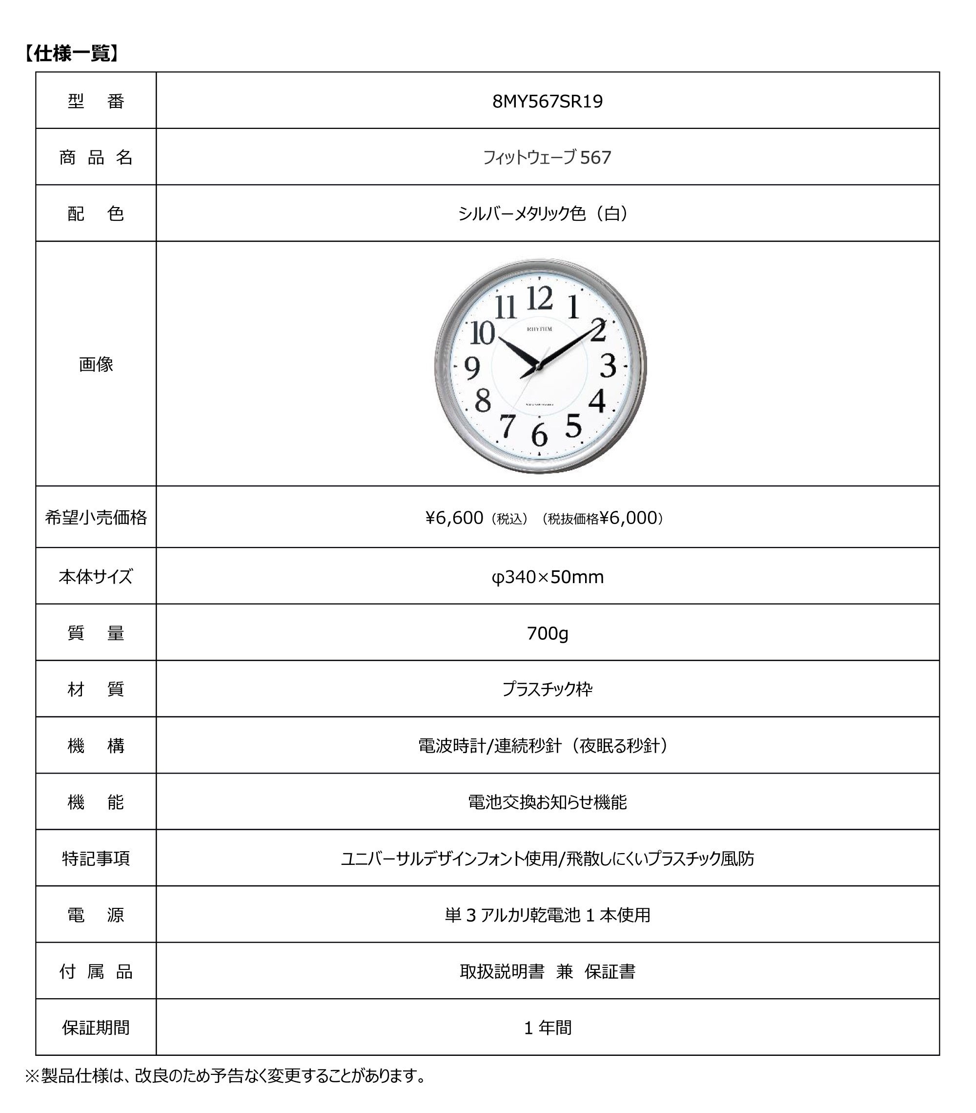 しっかり見やすく安全に配慮したスタンダード電波掛時計「フィットウェーブ567」発売