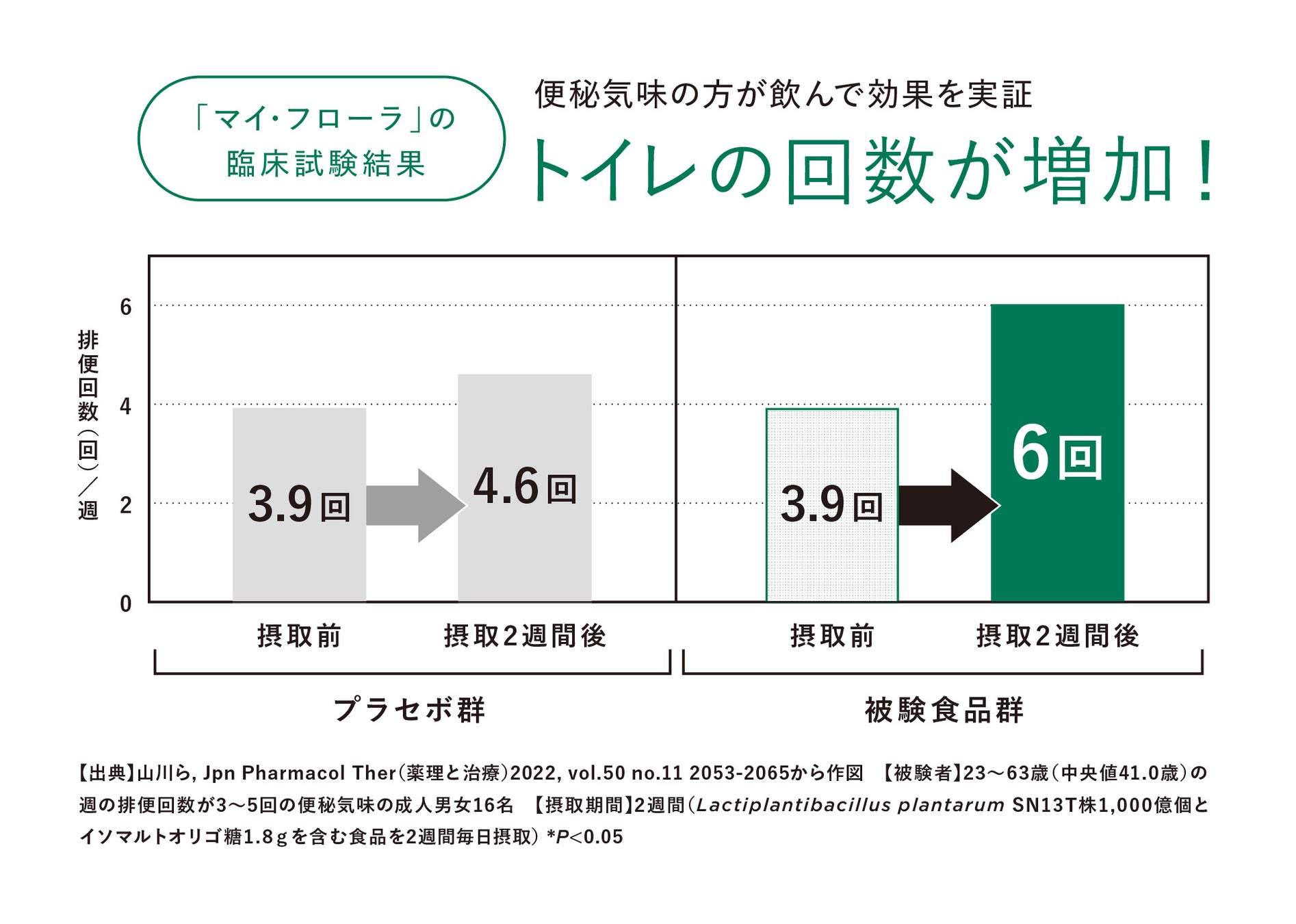 2週間継続摂取することで、排便回数が有意に増加しました。