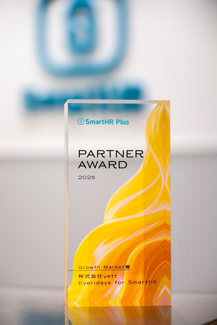 SmartHR専用のクラウドストレージ「Everidays for SmartHR」を運営する株式会社yett(本社:福岡県福岡市、代表取締役CEO:髙橋航太)は、株式会社SmartHR(本社:東京都港区、代表取締役CEO :芹澤雅人)が主催する「SmartHR Plus Partner Award 2025」において、GROWTH MARKET賞 −オリジナルアプリ部門− を受賞したことをお知らせします。