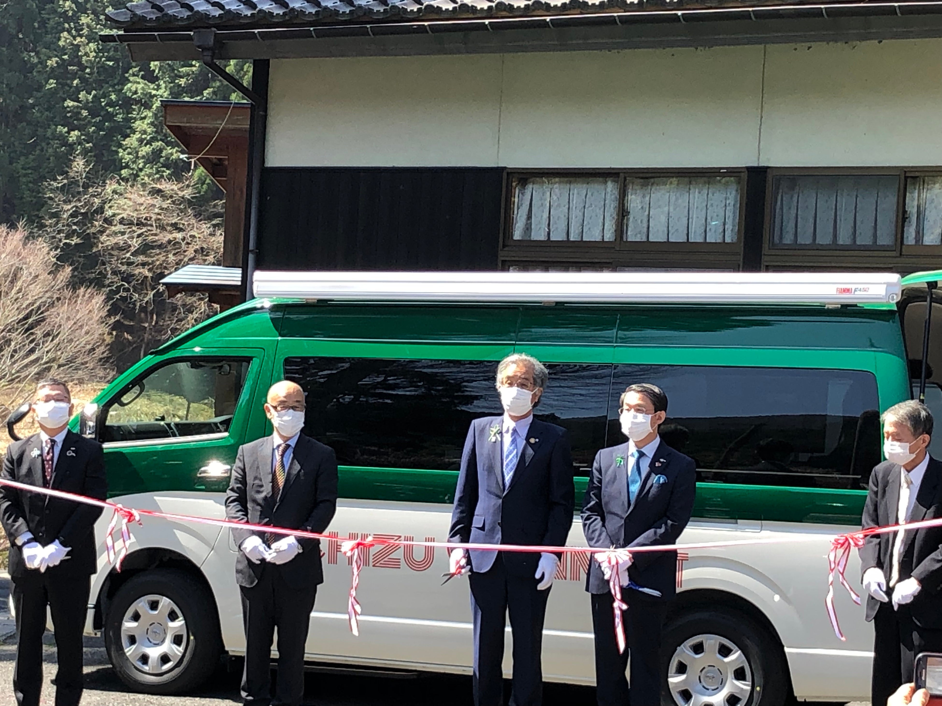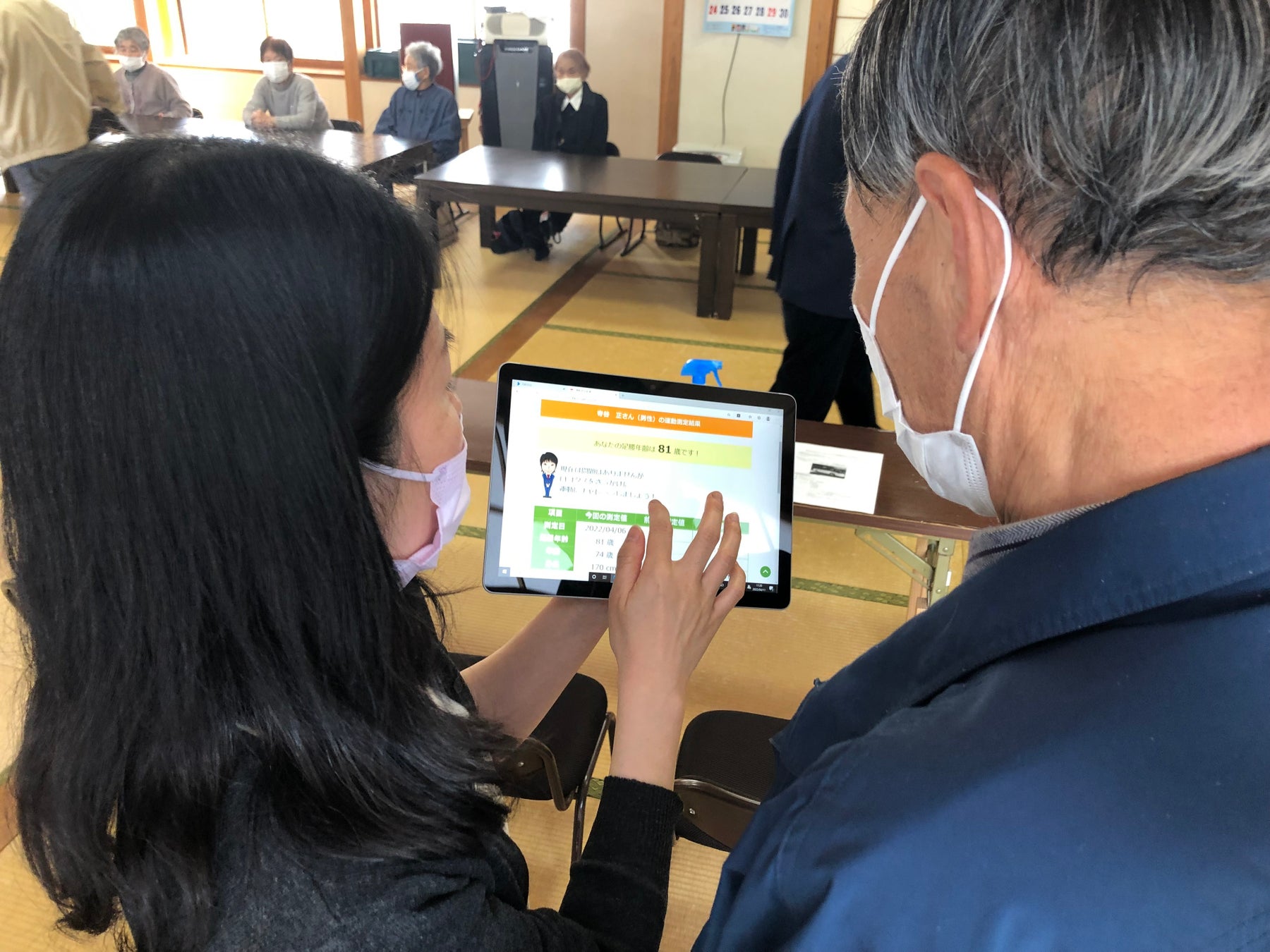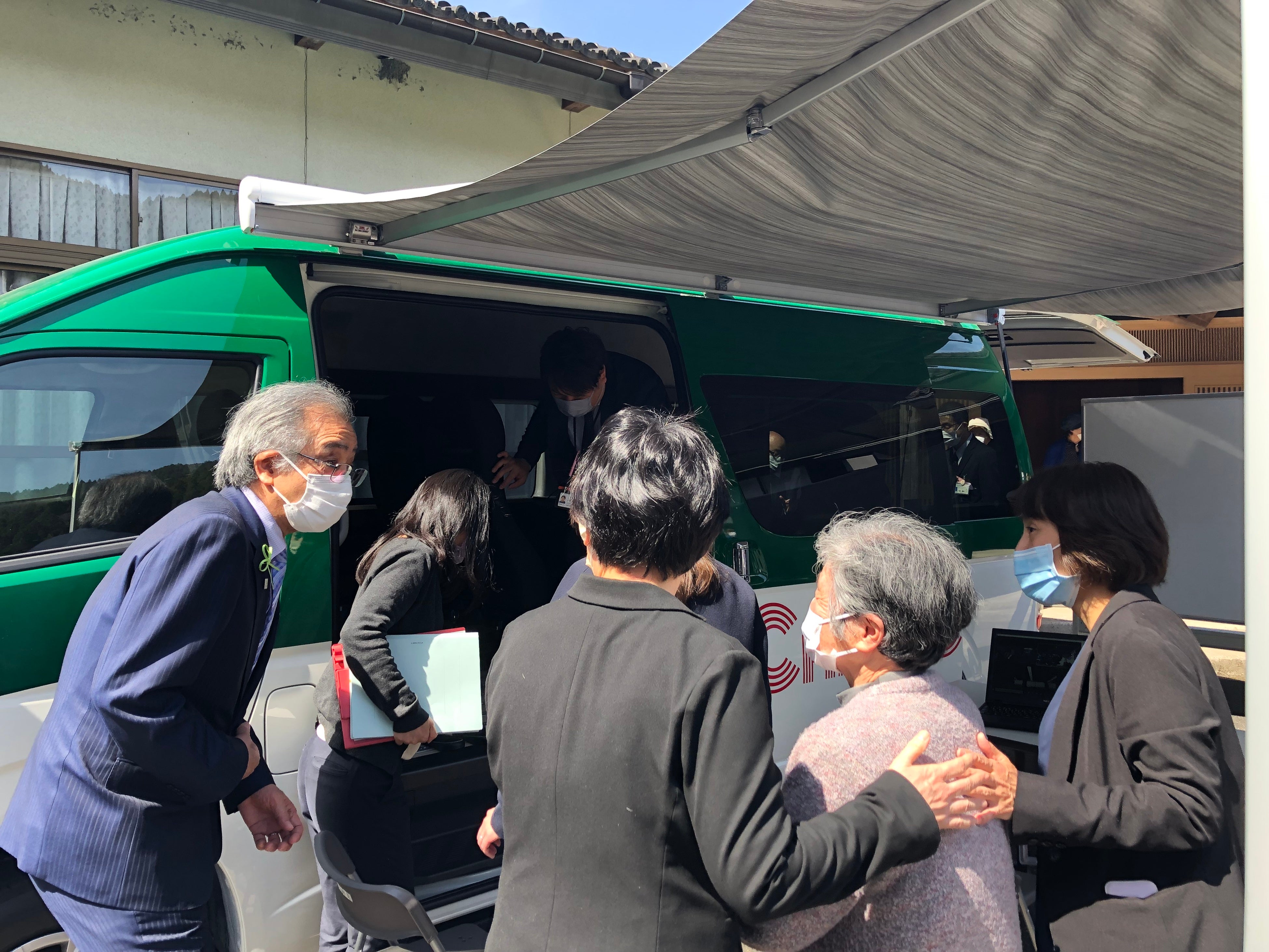 2022年4月11日(月)には、住民主体で開催する介護予防の取組「森のミニデイ(芦津地域)」にて、平井鳥取県知事、金兒智頭町長、地域住民らを迎え智頭町主催のお披露目会が開催され、コネクテッドカーと保健師が出向き、フレイル度のチェック等が実施されました。