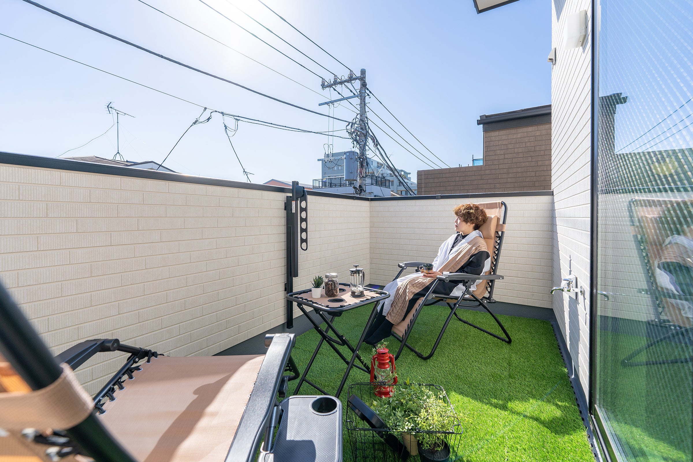 こちらの3階の5.3帖のファミリールームと3階ホールを繋ぐ引き戸を開けると、視線が抜けて開放感がたっぷり。南向きのバルコニー付きでベッドルームとしてもセカンドリビングとしてもフレキシブルに使っていただけます。
