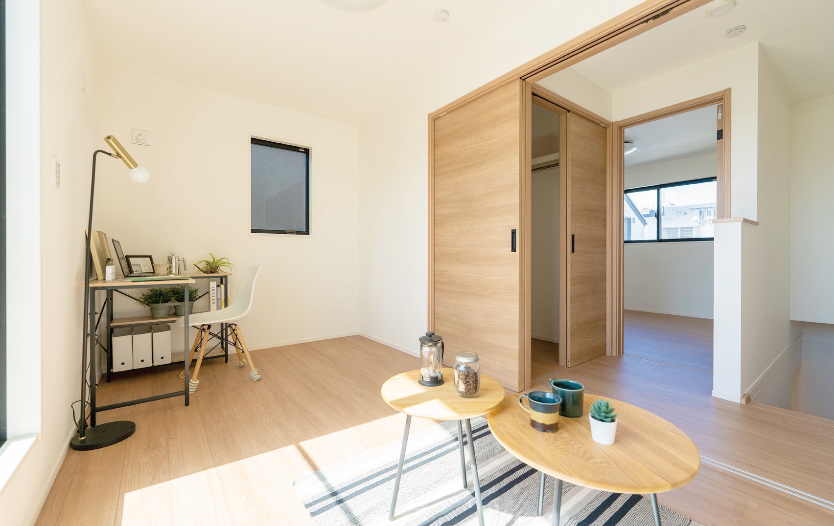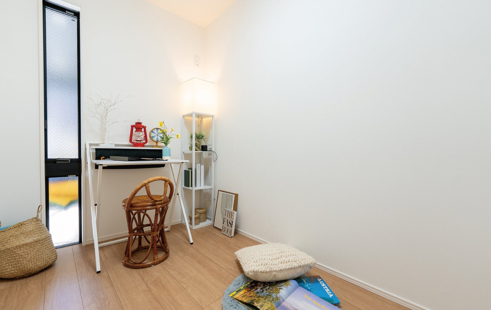 1階にある3帖の居室はUSBコンセントを設けているので、仕事をする時に個室で集中したい方のワークスペースにおススメ。こぢんまりしたお部屋の方が作業に集中できるという方はきっと多いのでは?