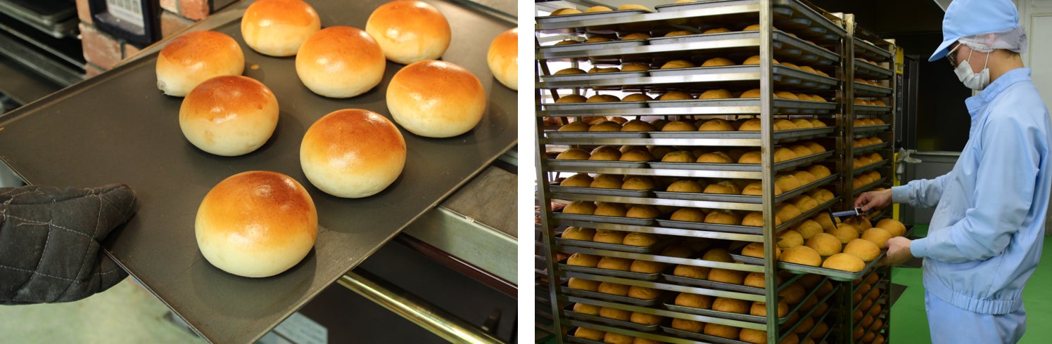■バンズ:各店舗で仕込んでいた時には、冷凍生地を使用した「ベイクオフ製法」を採用していましたが、セントラルキッチンでは小麦粉から作る「オールスクラッチ製法」を採用。冷凍を介さないため小麦粉の風味や焼き上がりの食感が損なわれず、香り高くふわふわした食感が特徴の自家製バンズを提供できるようになりました。