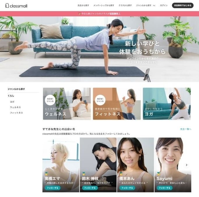 オンライン習い事マーケット「classmall」が新たにウェルネス・フィットネスジャンルを追加